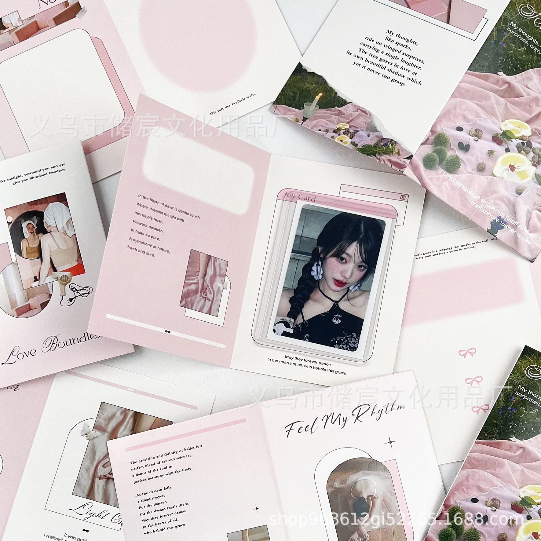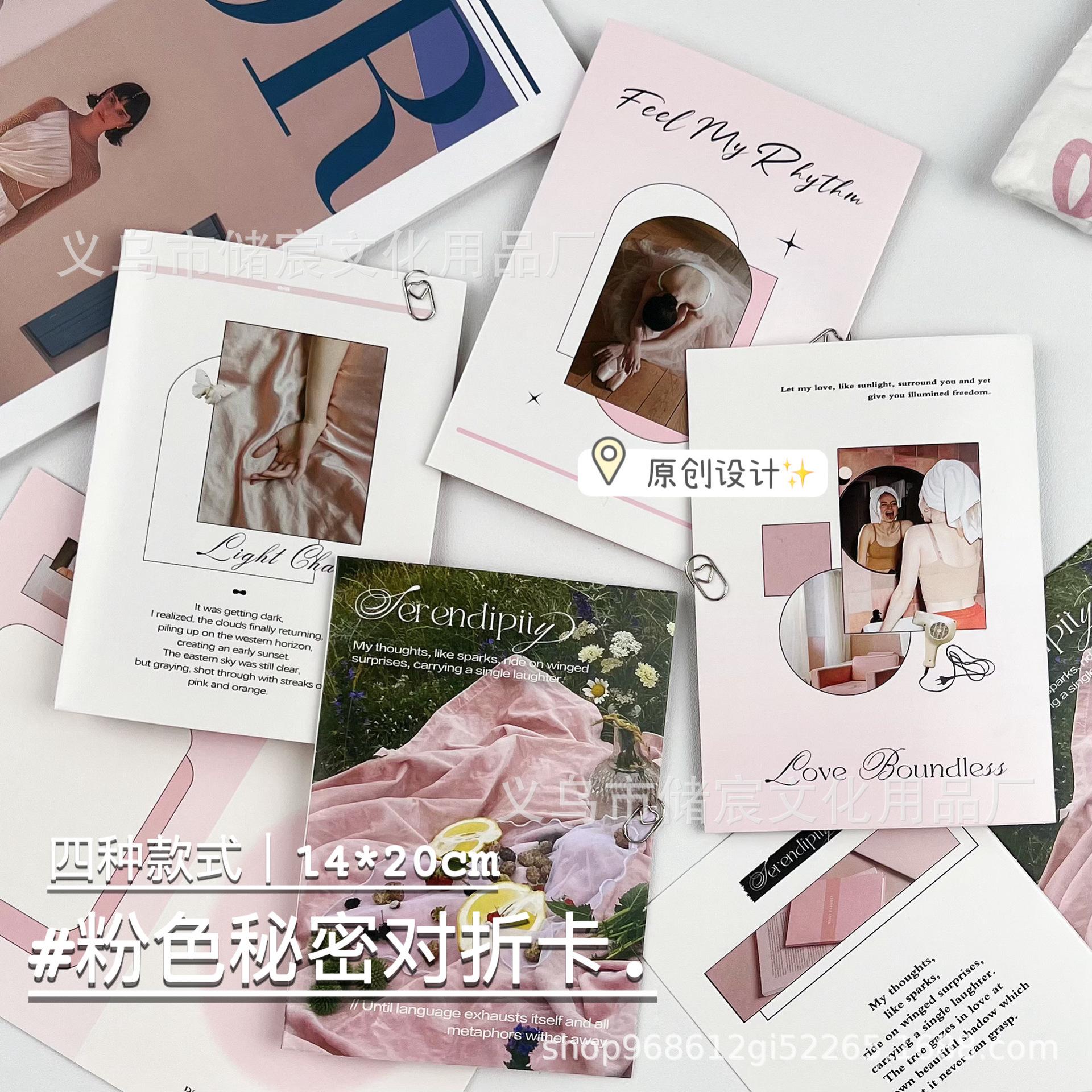 Tarjeta plegable secreta de verano rosa original de alto valor de color, material de embalaje, decoración, tarjeta de felicitación, tarjeta de mensaje
