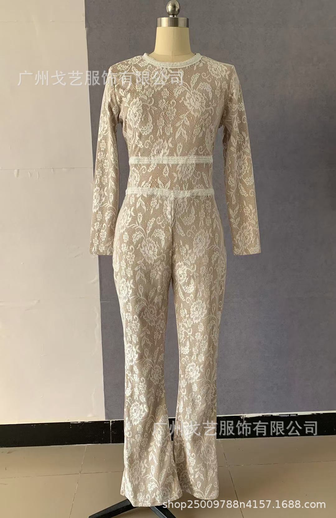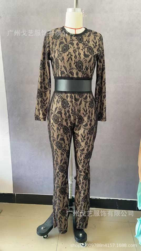 8181 Estilo de Celebridad Europeo y Americano Encaje Compuesto Elegante Mono Ajustado Europeo y Americano