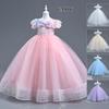 Vestido de lentejuelas para niñas transfronterizo europeo y americano, elegante vestido de lunares ondulados para niñas, vestido de princesa largo Ponte en stock 8020