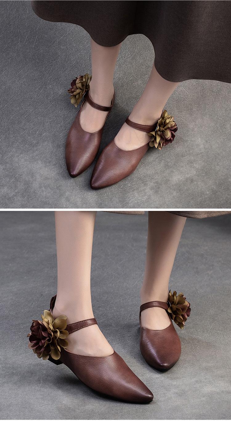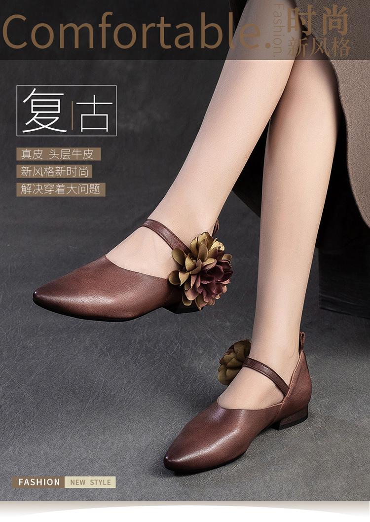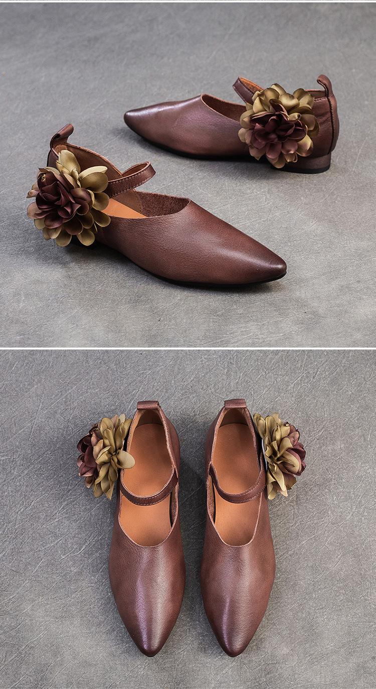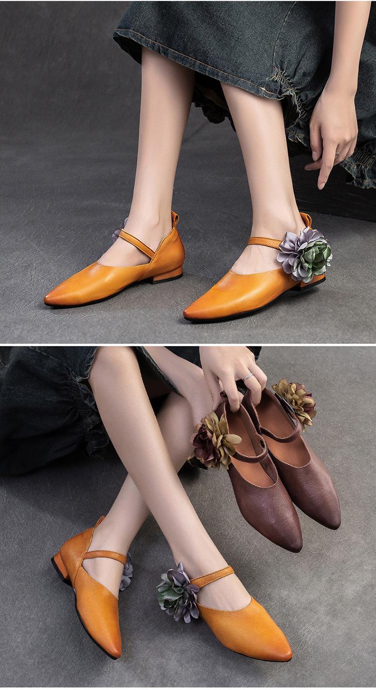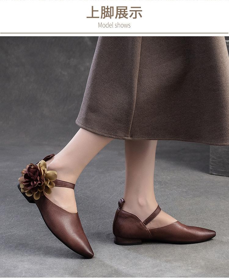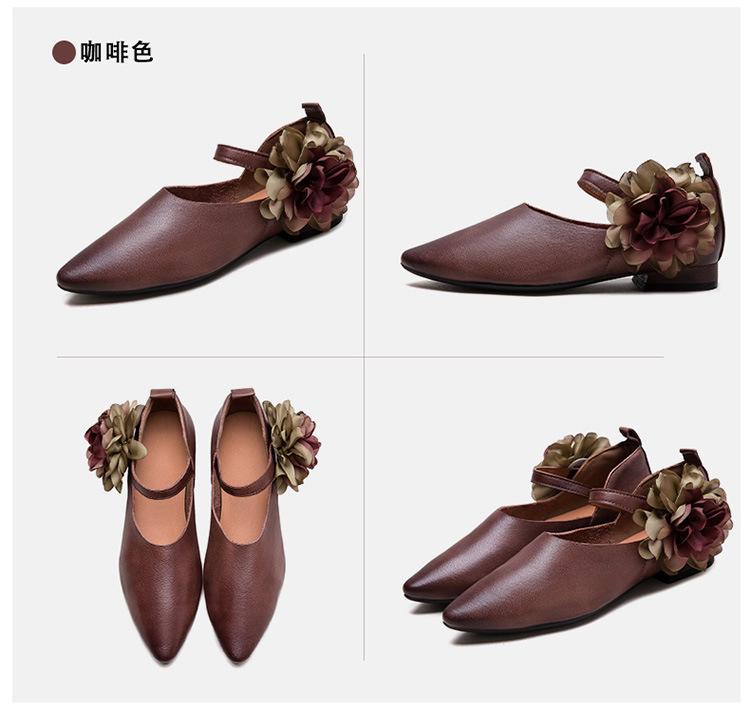 Shanghai Jiejie 2024 Otoño Nuevo Estilo Étnico Flor Puntiaguda Estilo Mori Zapatos de Una Sola Capa Zapatos Planos Combinables de Moda para Mujer