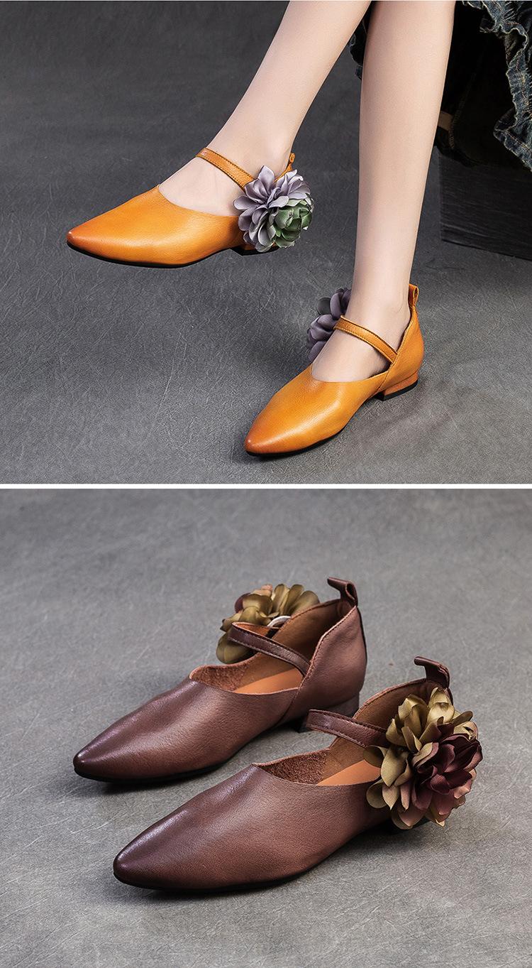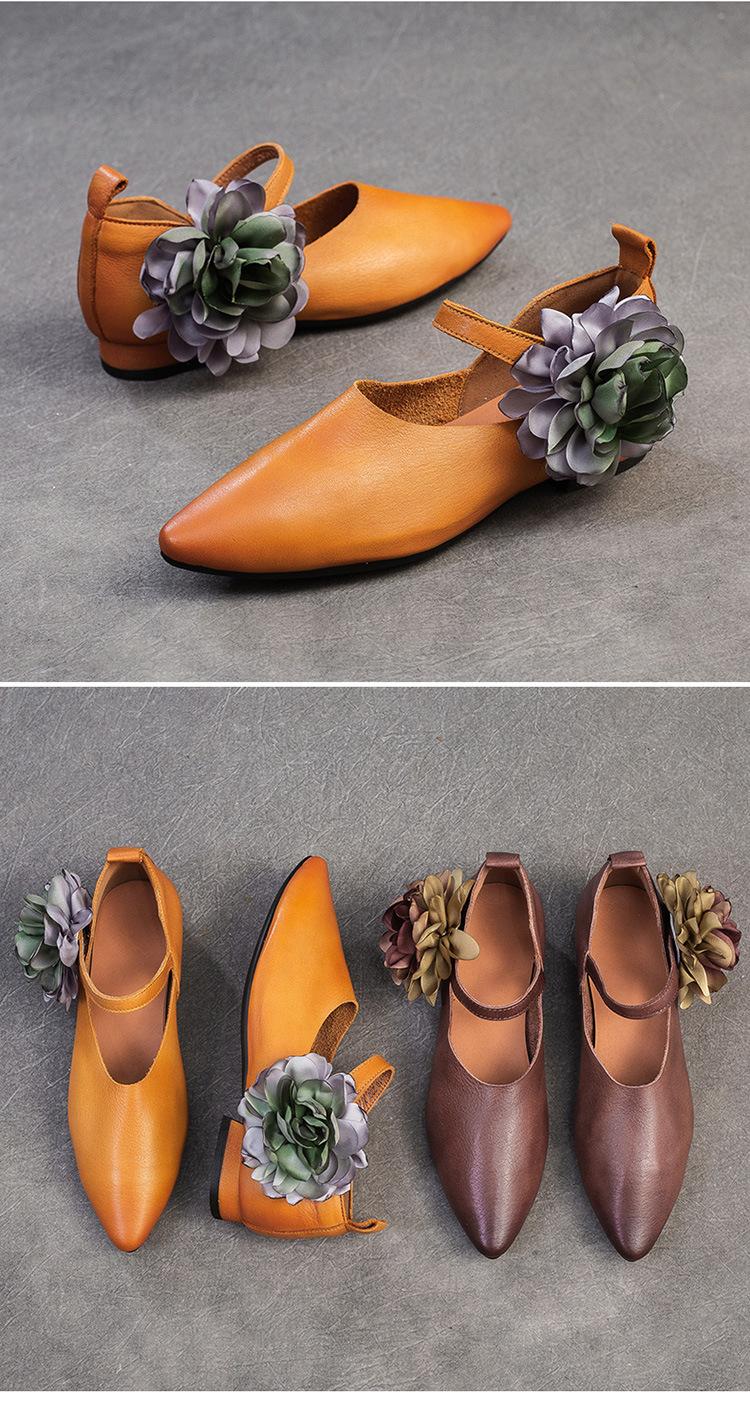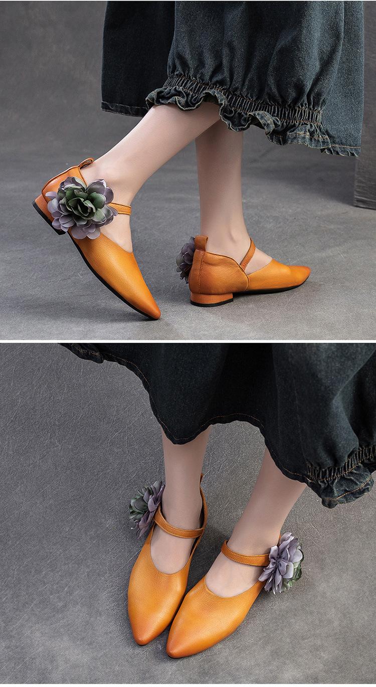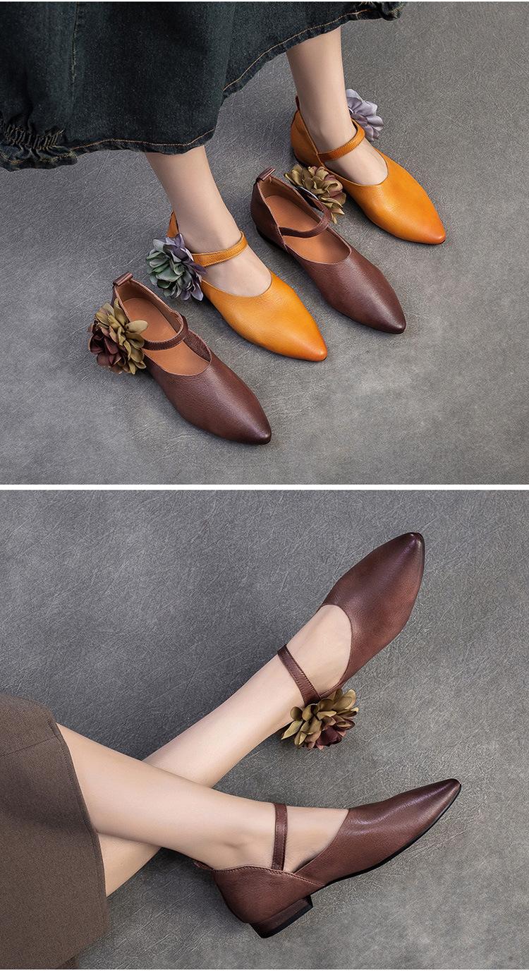 Shanghai Jiejie 2024 Otoño Nuevo Estilo Étnico Flor Puntiaguda Estilo Mori Zapatos de Una Sola Capa Zapatos Planos Combinables de Moda para Mujer