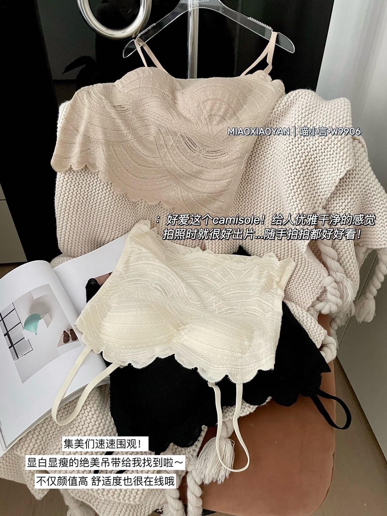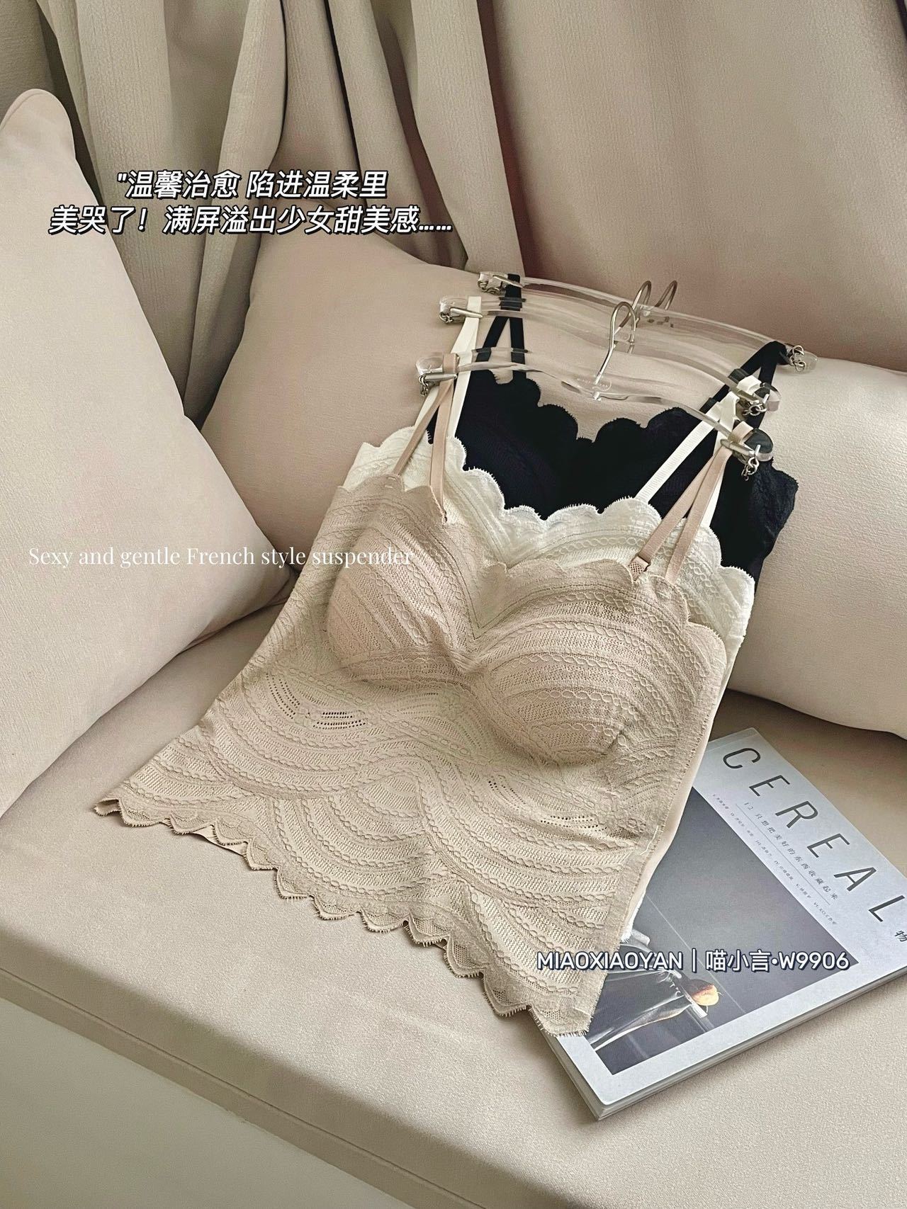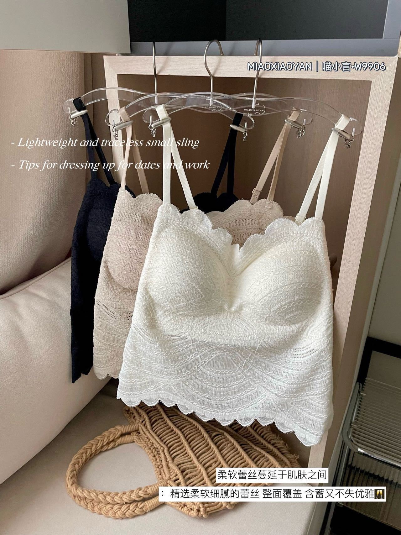 Chaleco W9906# Lazy Water Ripple Lace Sling de tela suave sin anillas cómodo y desnudo para mujer
