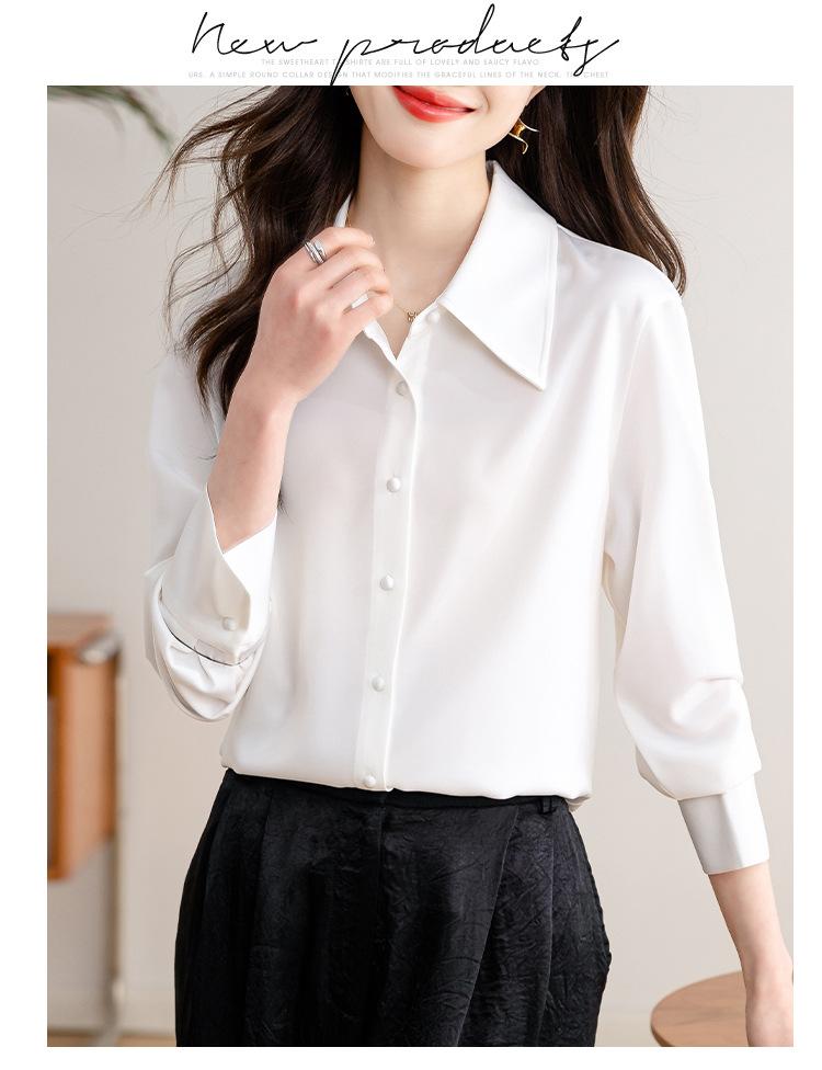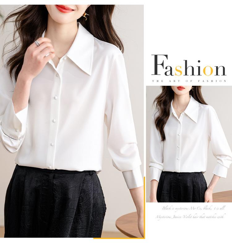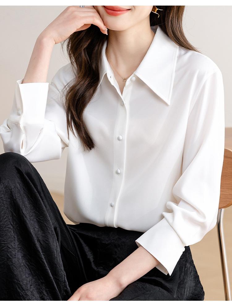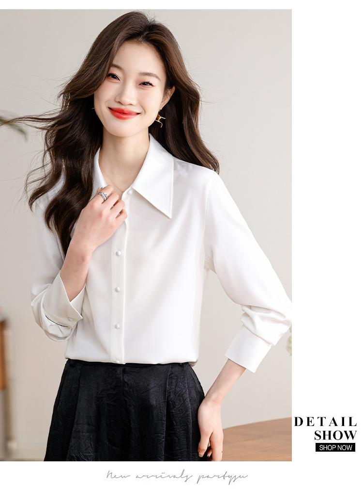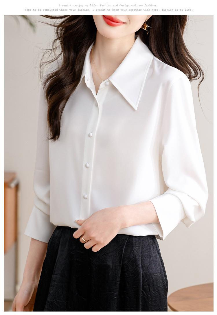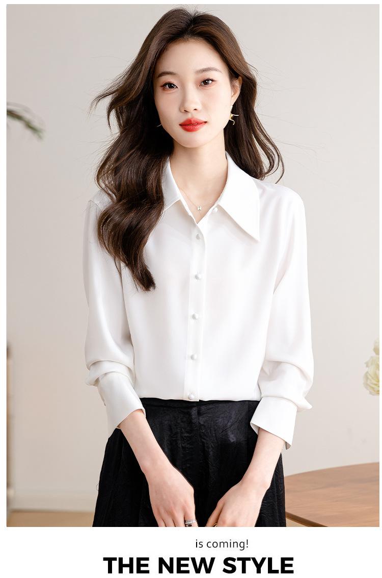 Camisa blanca de satén para mujer, de manga larga, nueva primavera 2025, elegante, profesional, ajustada, para ir al trabajo, formal.