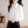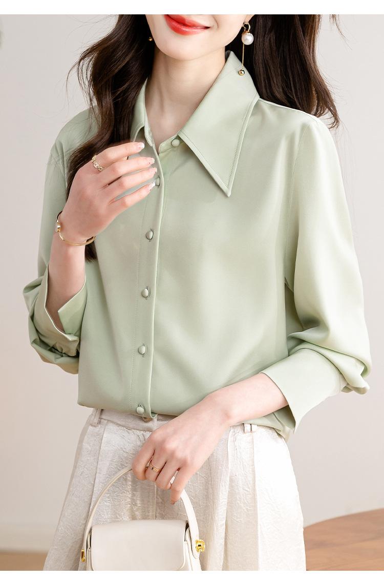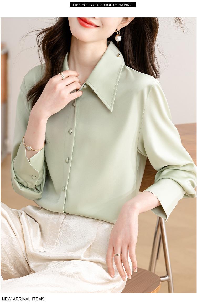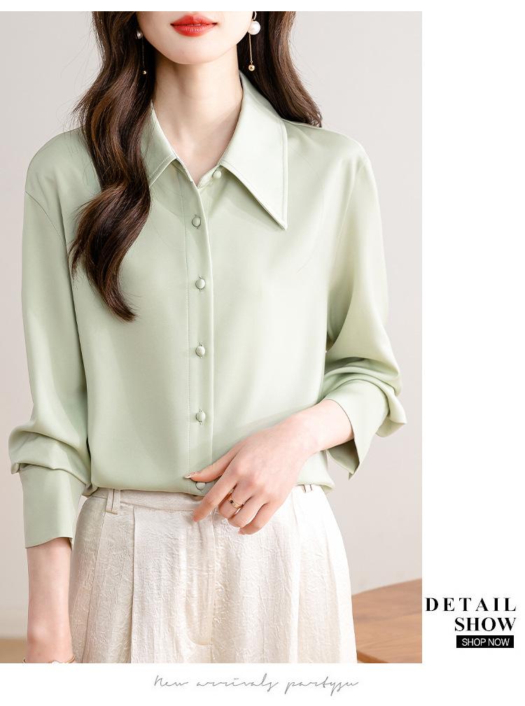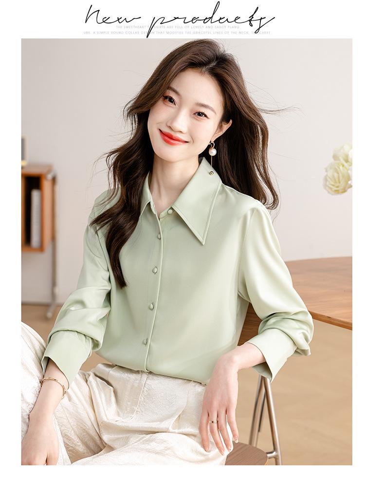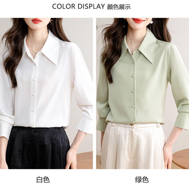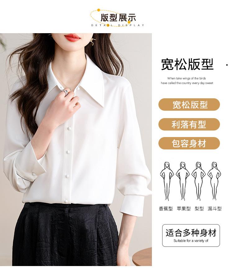 Camisa blanca de satén para mujer, de manga larga, nueva primavera 2025, elegante, profesional, ajustada, para ir al trabajo, formal.