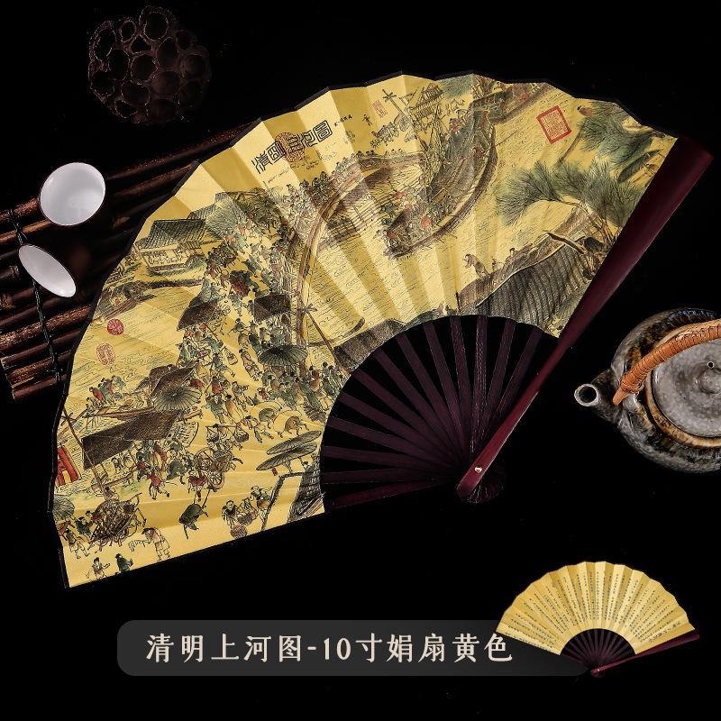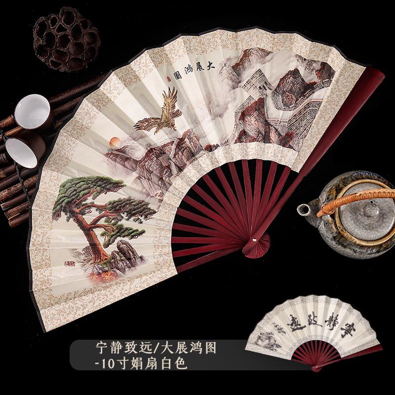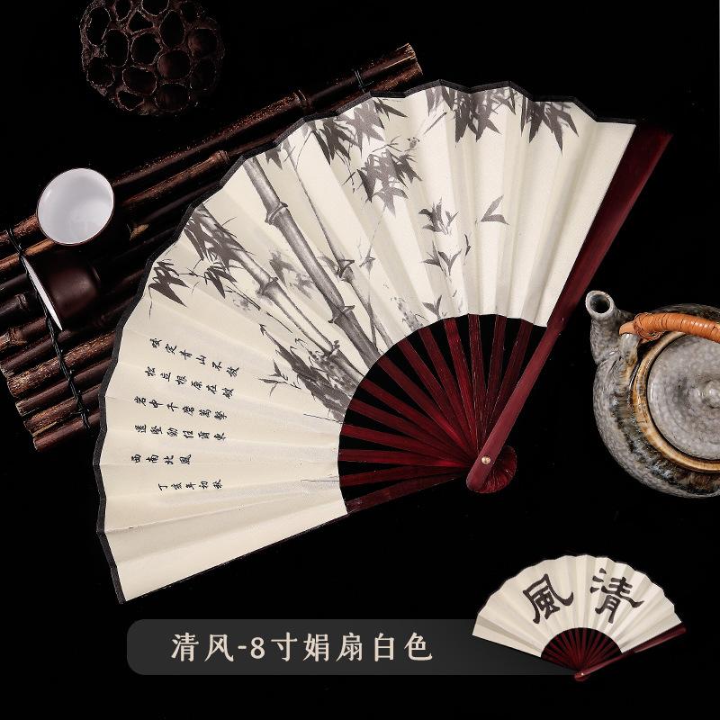 Abanico antiguo de 8 pulgadas abanico plegable estilo chino marea nacional abanico plegable para hombre tinta verano 10 pulgadas fábrica mayoreo impresión de LOGO