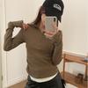 Camiseta de manga larga ajustada coreana para mujer, top de algodón de dos piezas y doble capa con botones falsos, otoño 2025, 265-1