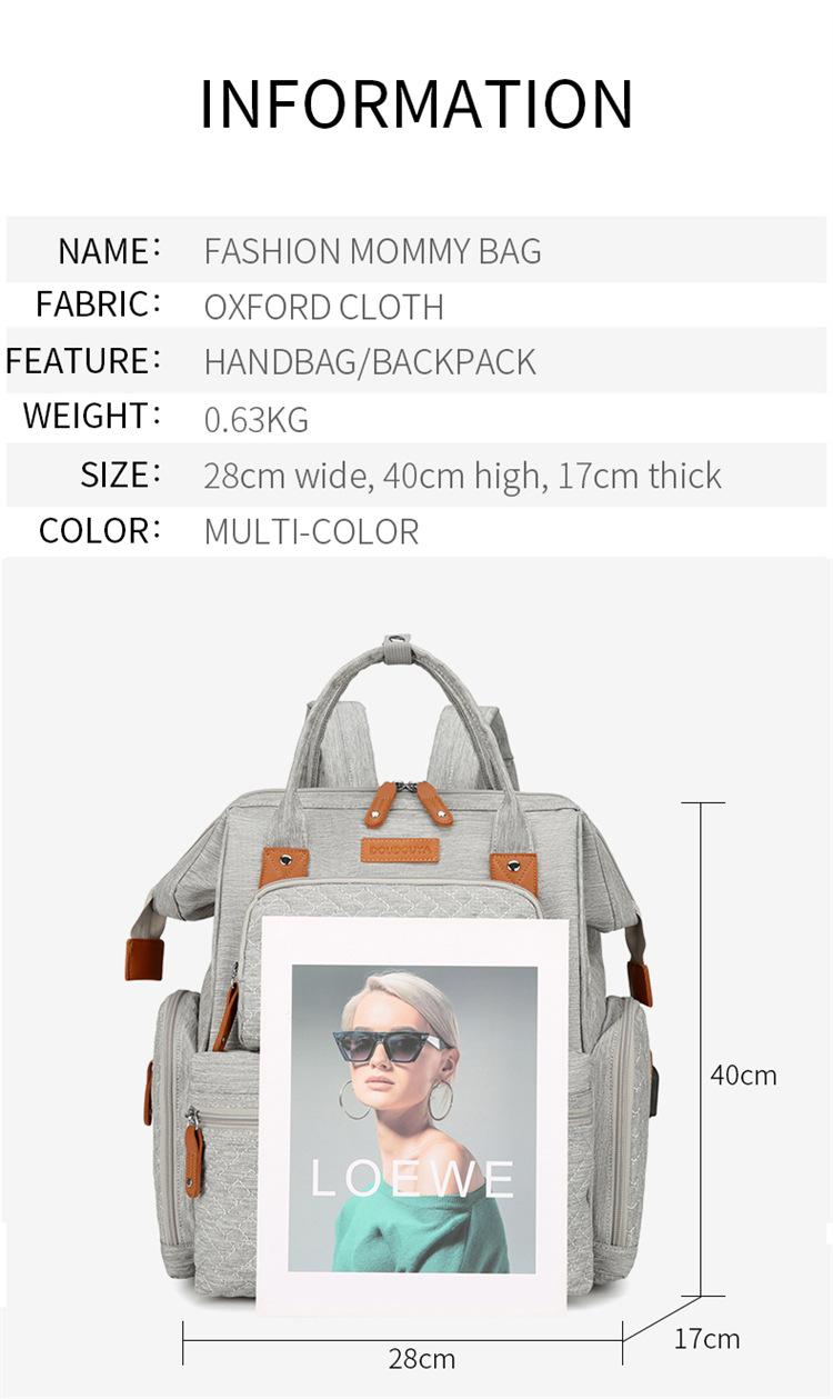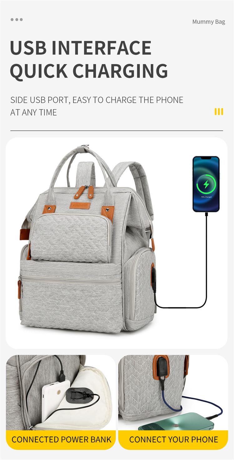 Bolsa de Viaje Neutra de Estilo Nuevo Europeo y Americano con Bolsa de Mamá Rectangular Acolchada Bordada para Bebé, Mochila Nueva con Cambiador