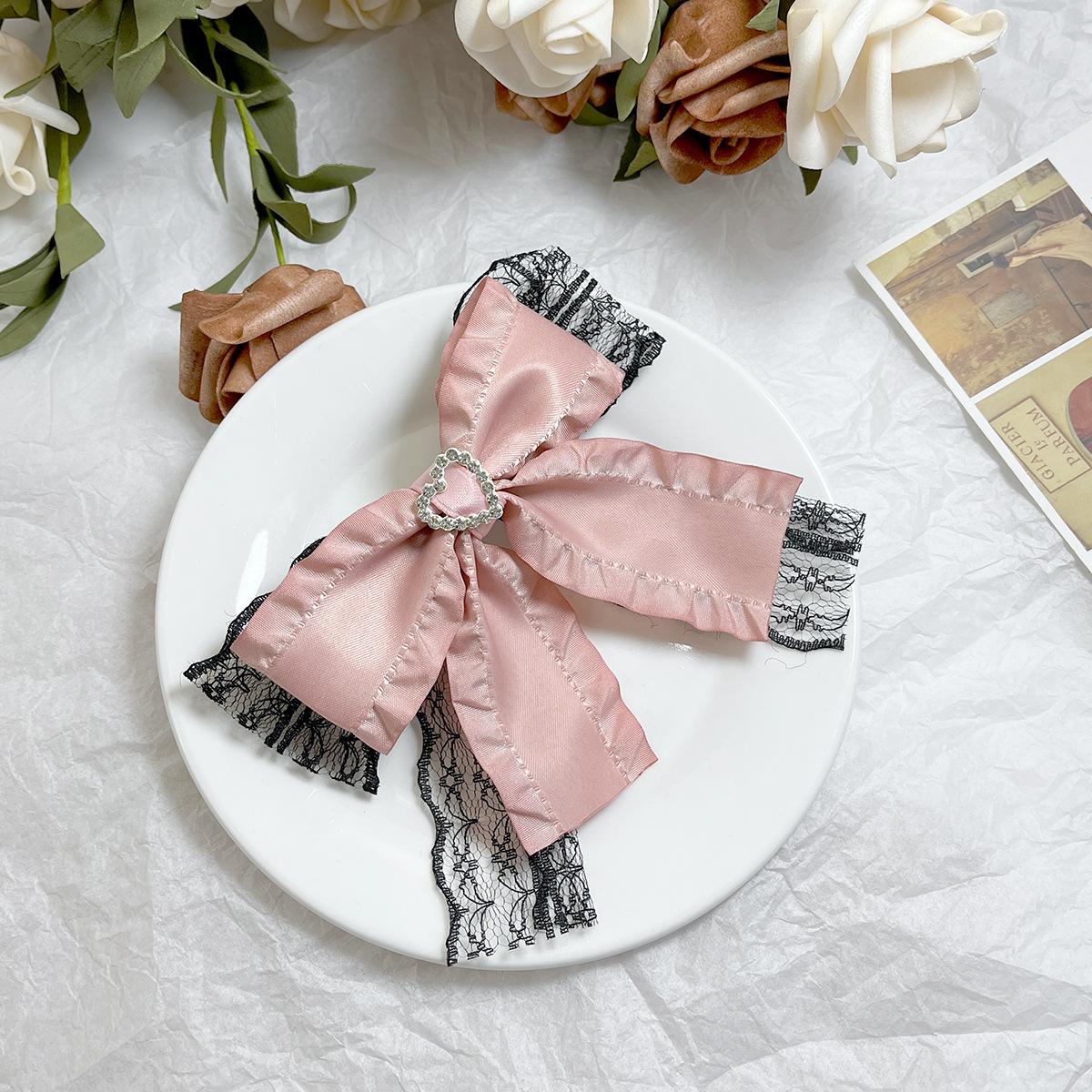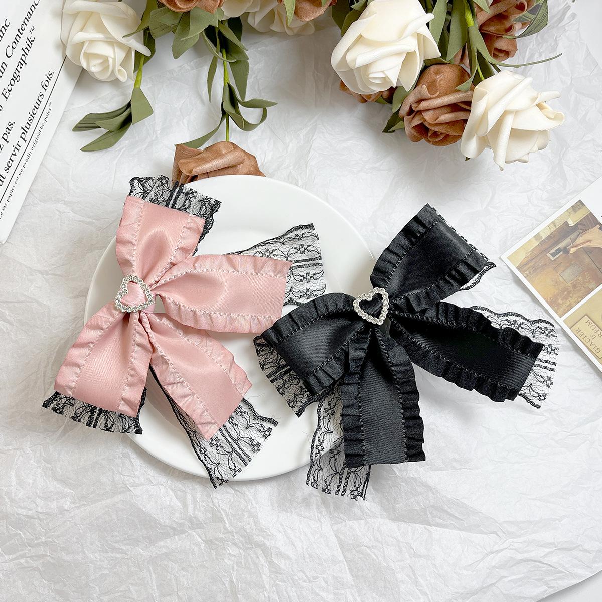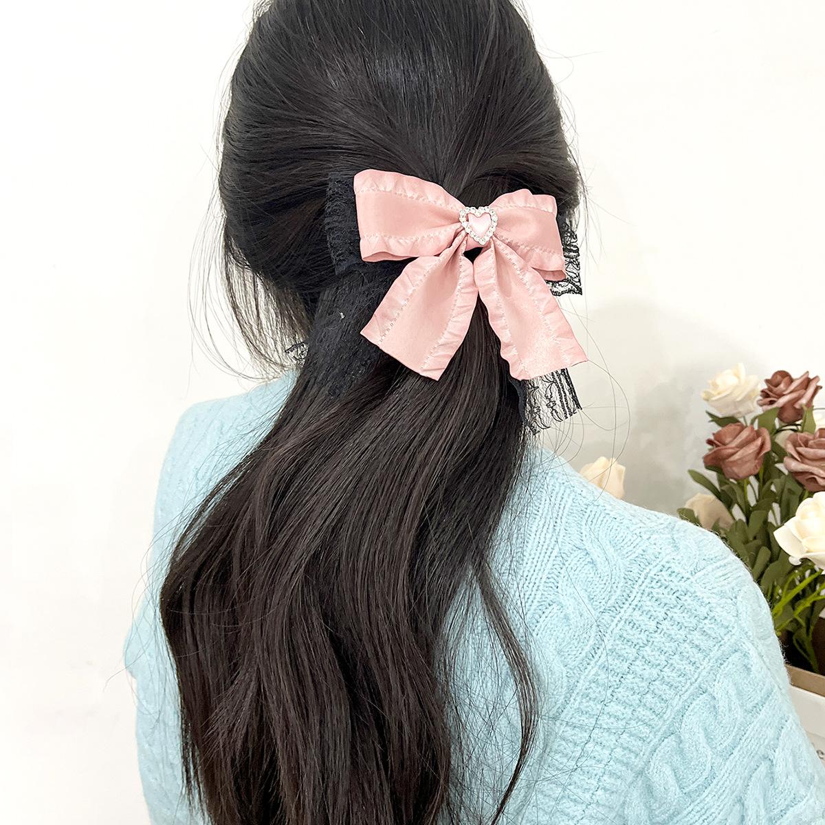 Pinza para el cabello de encaje con lazo de corazón japonés y coreano para mujer, pinza lateral elegante con accesorios para el cabello en la parte posterior de la cabeza
