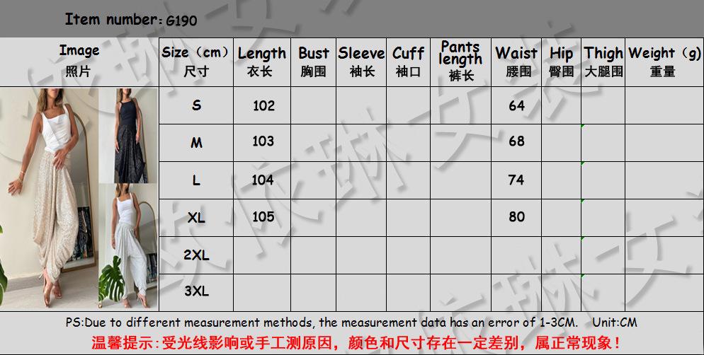 Pantalones bombachos holgados con lentejuelas para fiesta, primavera y verano, estilo europeo y americano, estilo informal, con cintura elástica, para transfronterizos, 2024