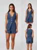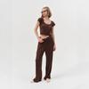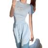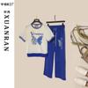 Traje de verano para mujer, con letras perforadas en caliente, top corto de tirantes sin espalda y pantalón ancho. Conjunto de dos piezas.