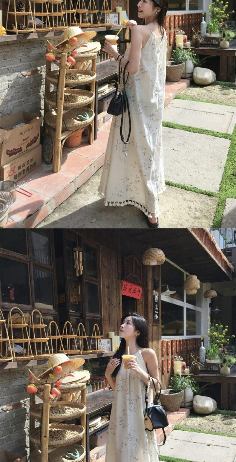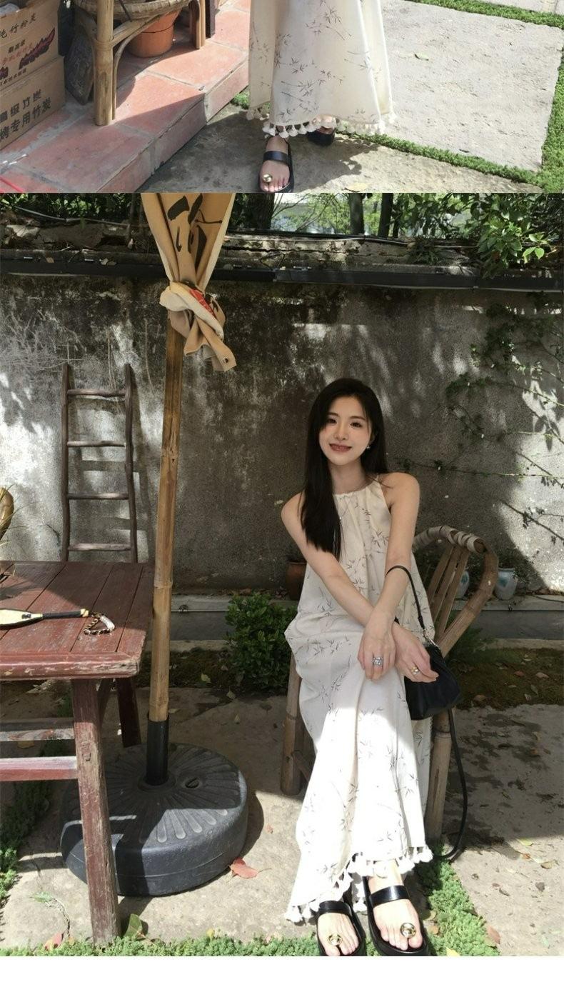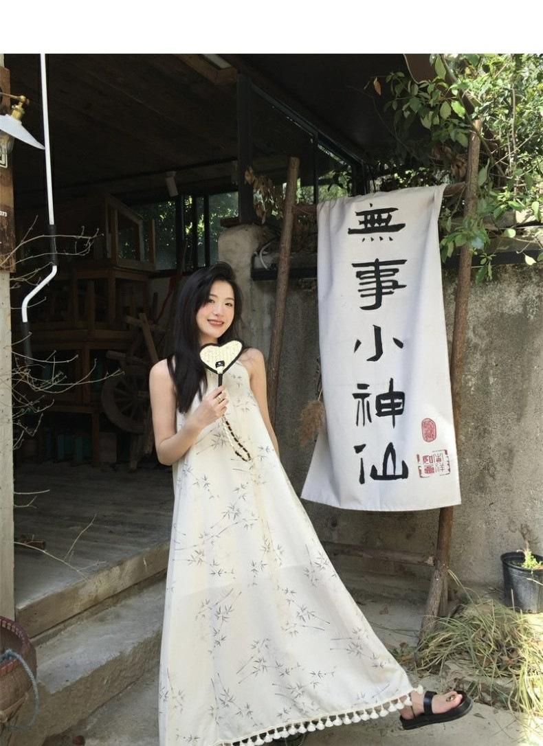 Nuevo Vestido de Pasos con Borlas de Estilo Chino para Mujer 2025 Verano Nuevo Estilo Fresco Retro Mejorado Falda Larga Línea A