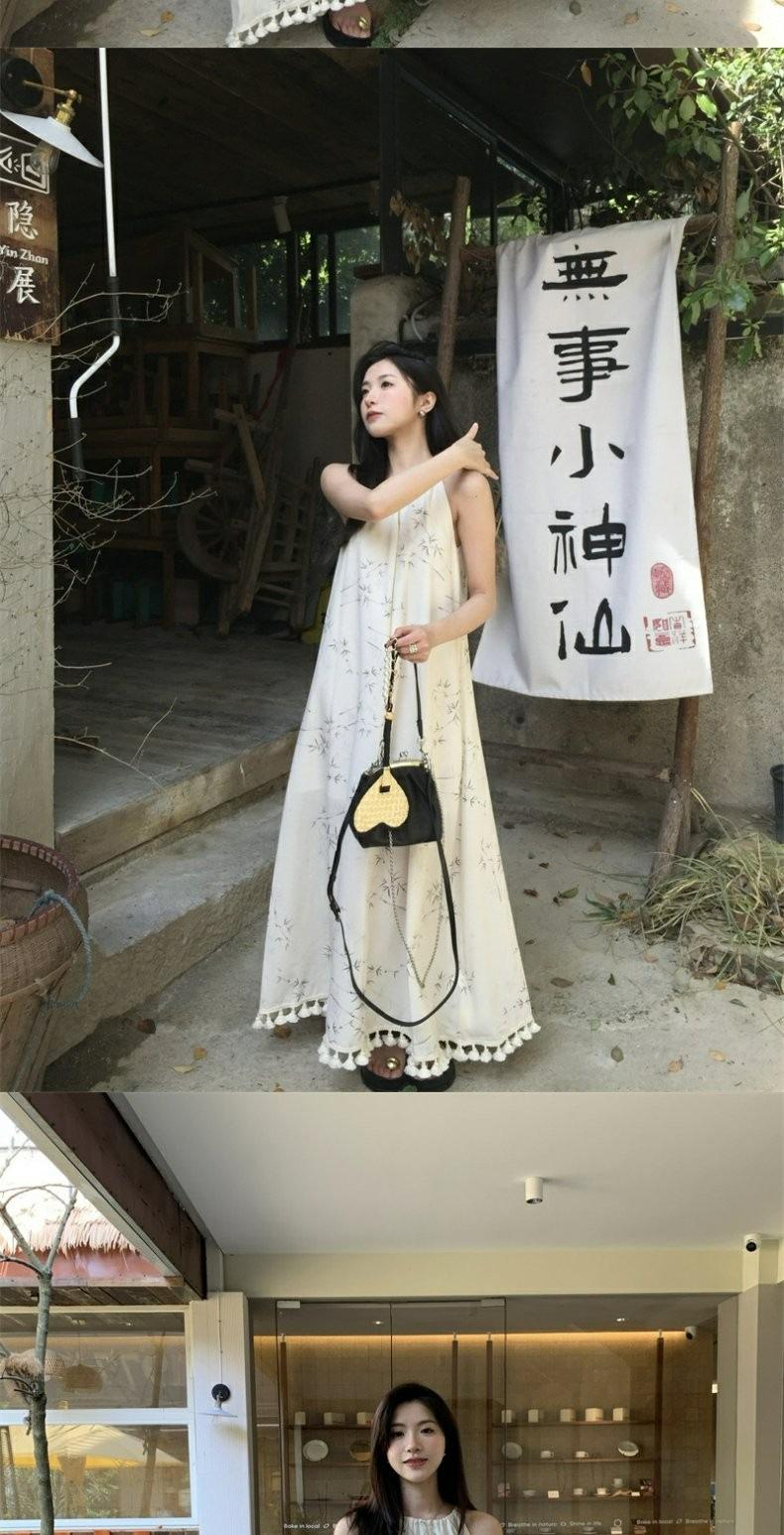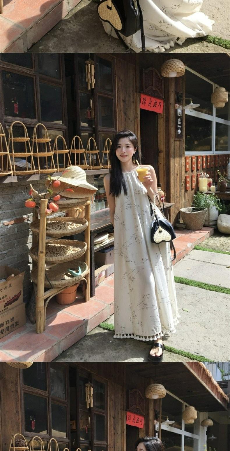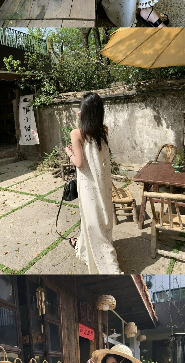 Nuevo Vestido de Pasos con Borlas de Estilo Chino para Mujer 2025 Verano Nuevo Estilo Fresco Retro Mejorado Falda Larga Línea A