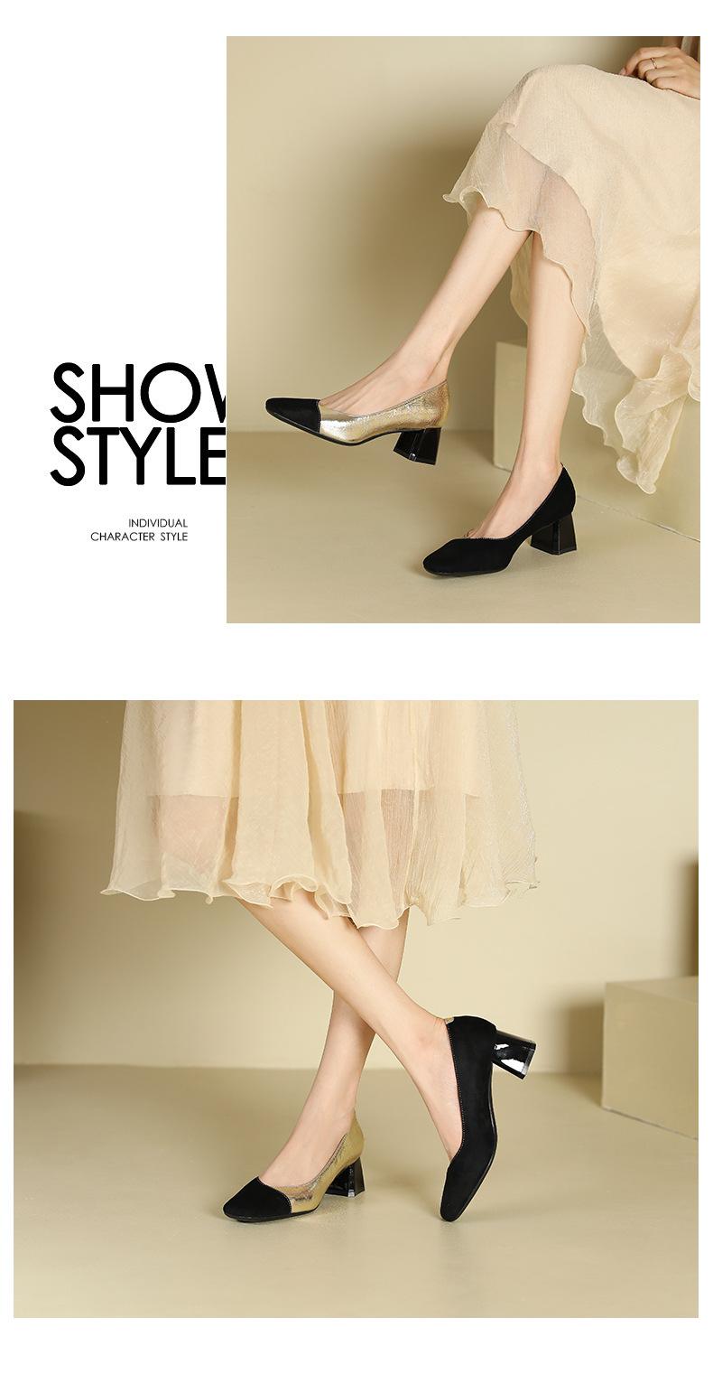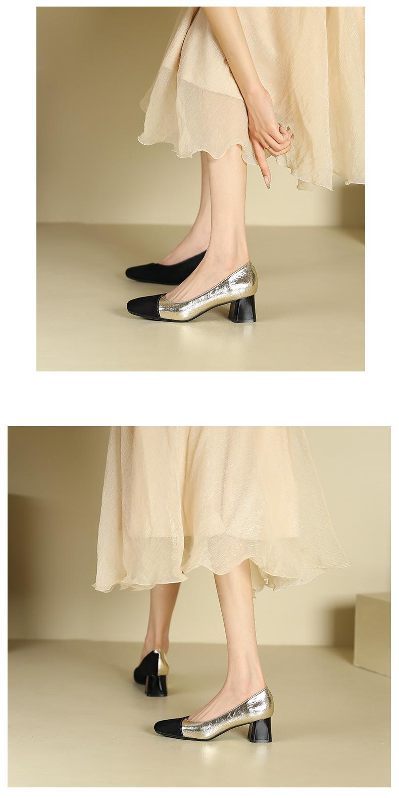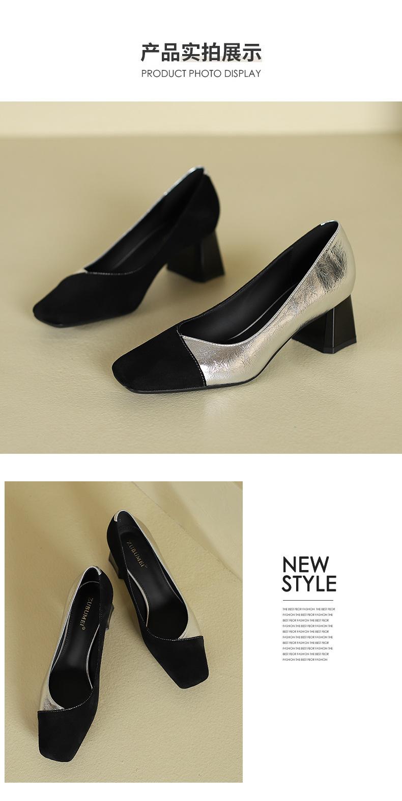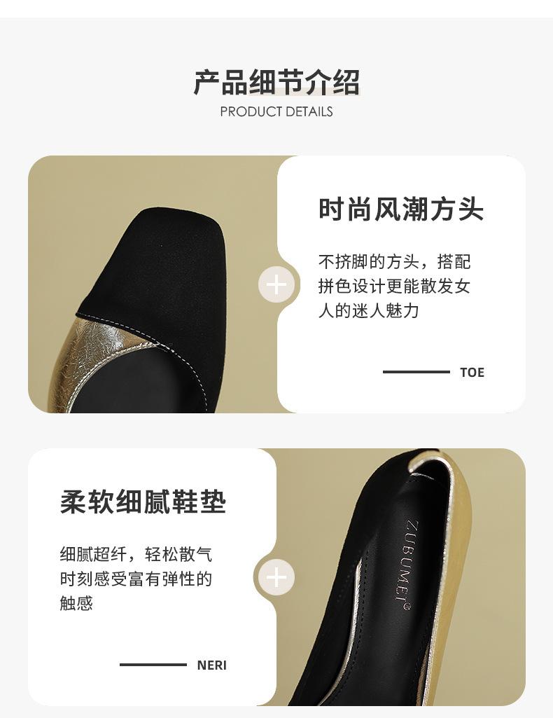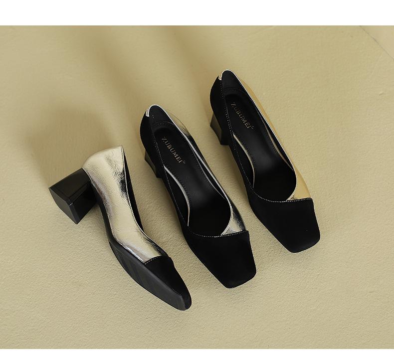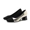 5299-A8 Zapatos Mary Jane de Bloques de Color Francés Punta Cuadrada Boca Baja Tacón Grueso Zapatos Individuales para Mujer Popular en Internet Mismo Estilo Para Ir al Trabajo Tacones Altos