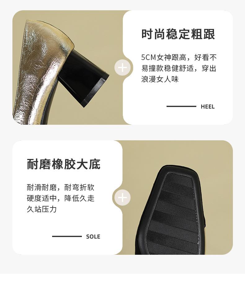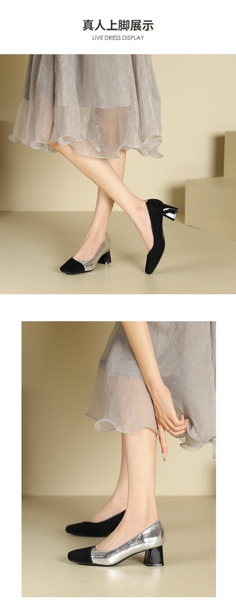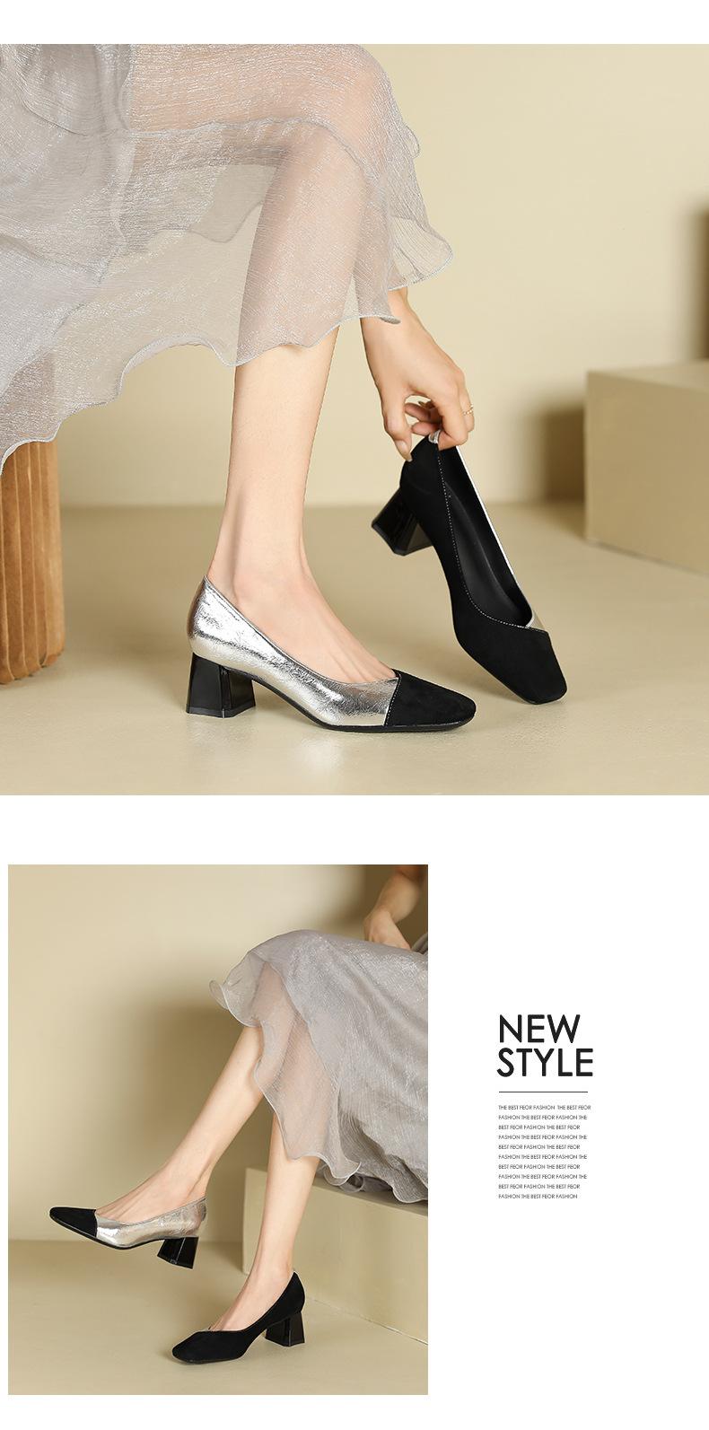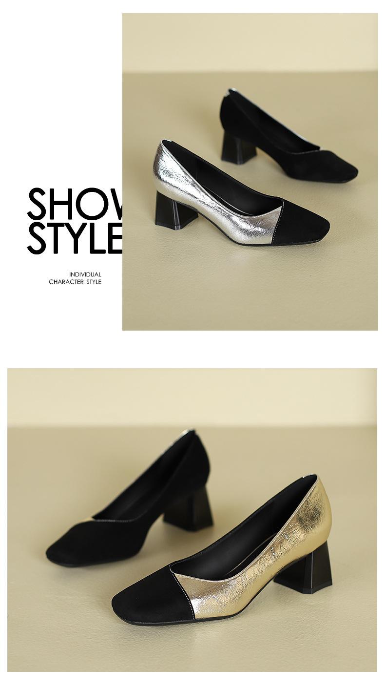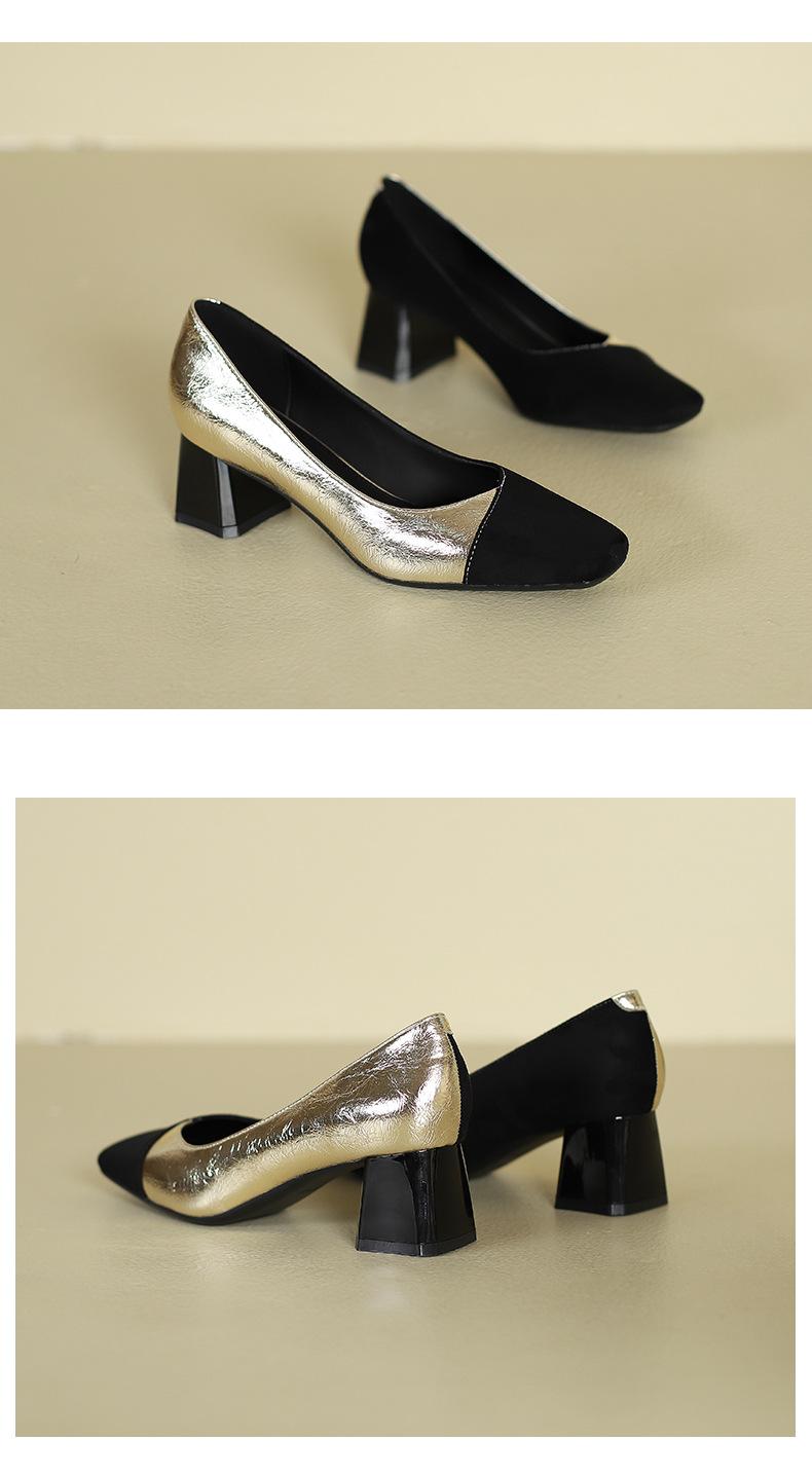 5299-A8 Zapatos Mary Jane de Bloques de Color Francés Punta Cuadrada Boca Baja Tacón Grueso Zapatos Individuales para Mujer Popular en Internet Mismo Estilo Para Ir al Trabajo Tacones Altos