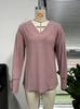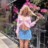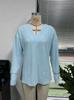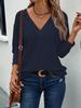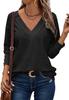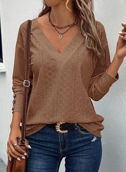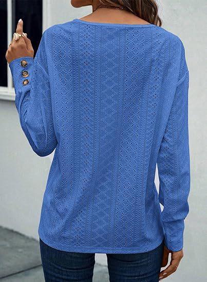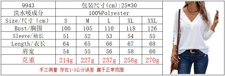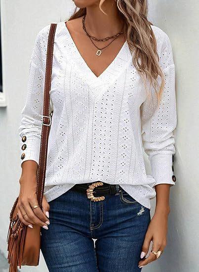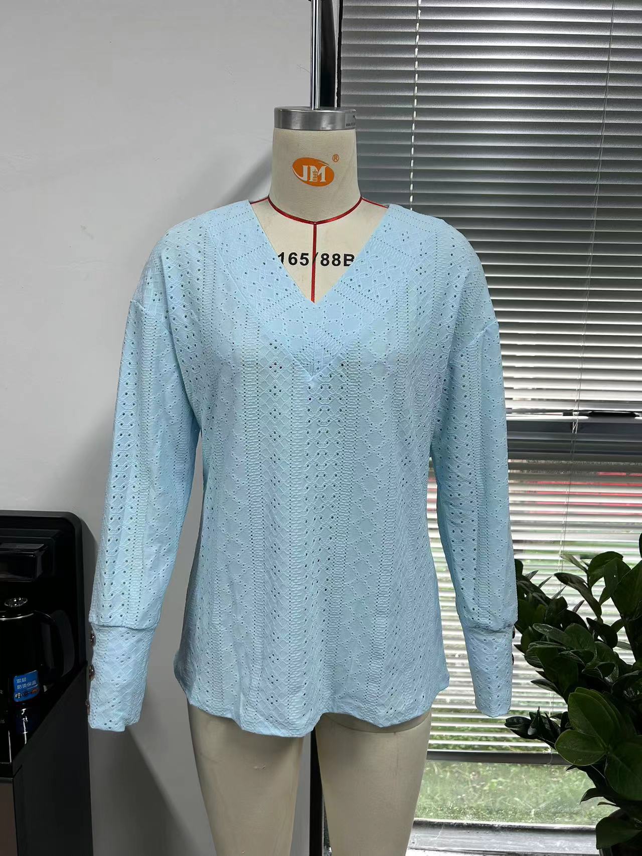 Camisa de manga larga con cuello en V y encaje hueco con botones para mujer, estilo europeo y americano, 2024
