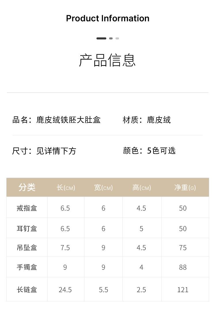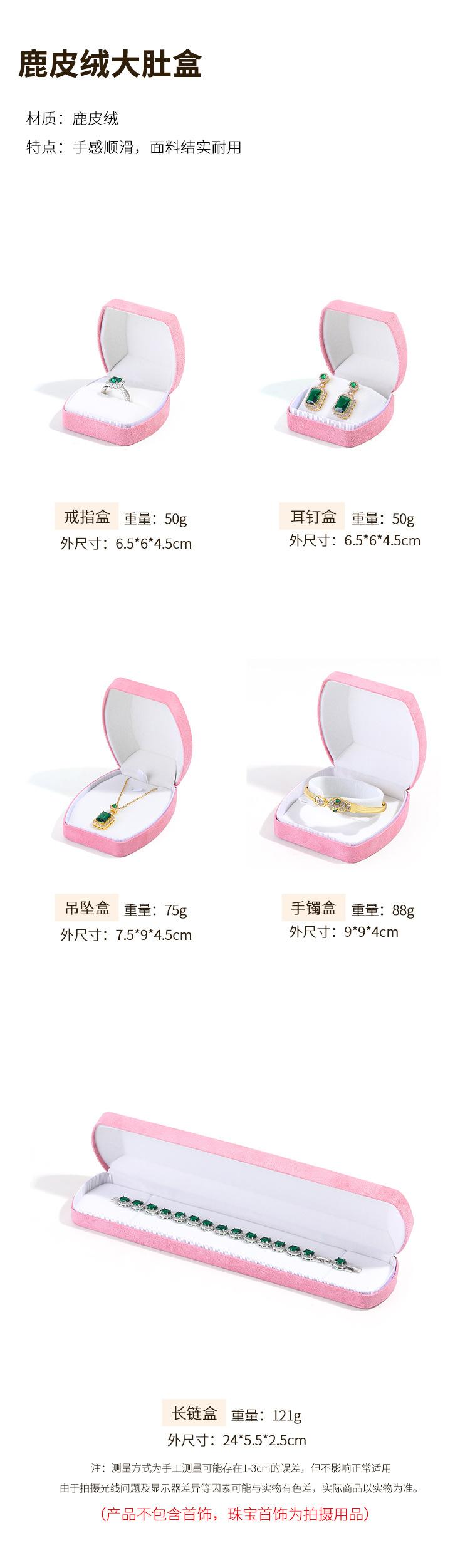 Bracelet box (90*90*40), Pendant box (75*90*45), Ring box (65*60*45), Earring and earring box (65*60*50), Long...