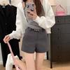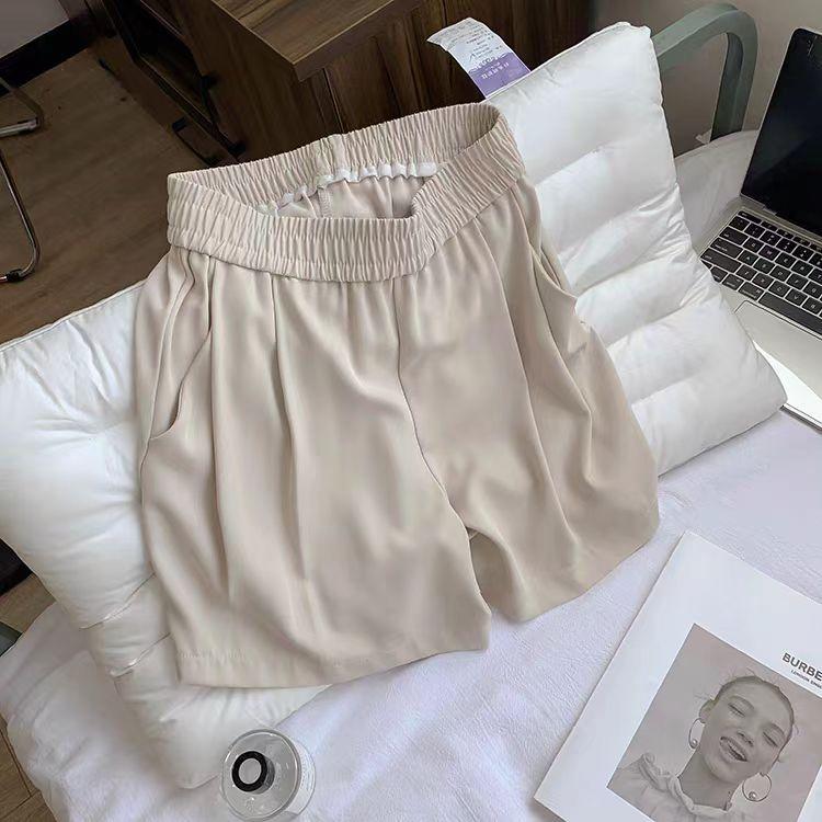 Traje de primavera para mujer, cintura alta, corte A, pantalones cortos anchos, pantalones de verano, holgados, de estilo neutro, combinables con todo.