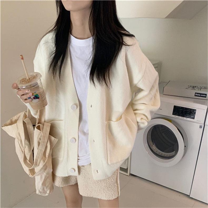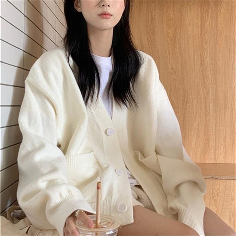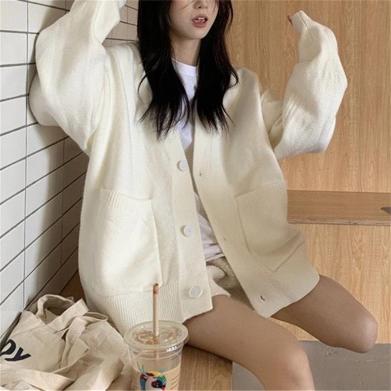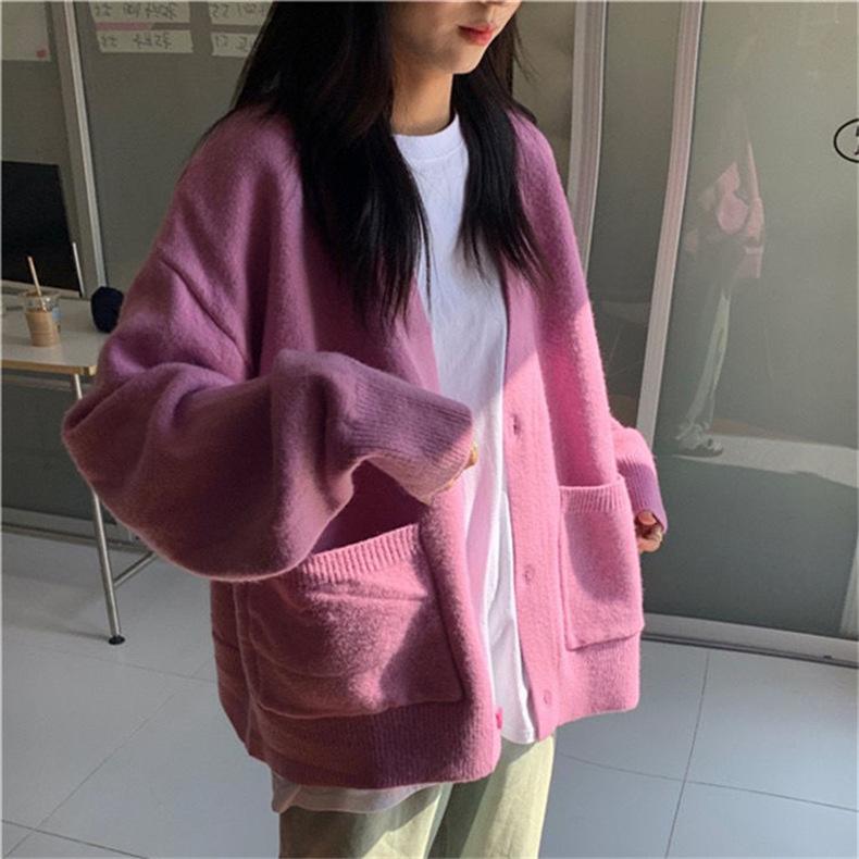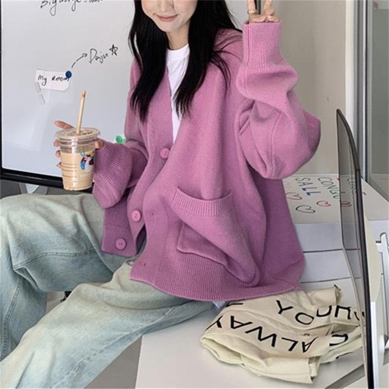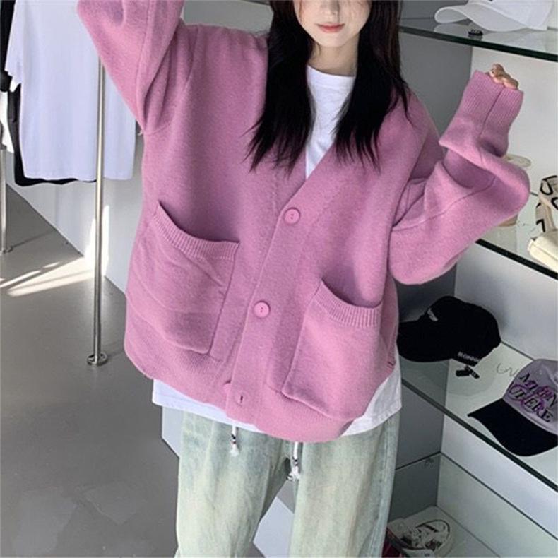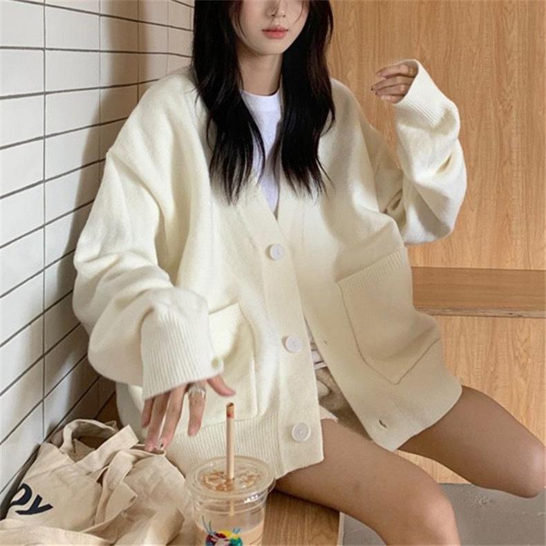 Suéter tipo cárdigan de otoño e invierno para mujer, nuevo estilo holgado, suave y encerado, de punto, con cuello en V