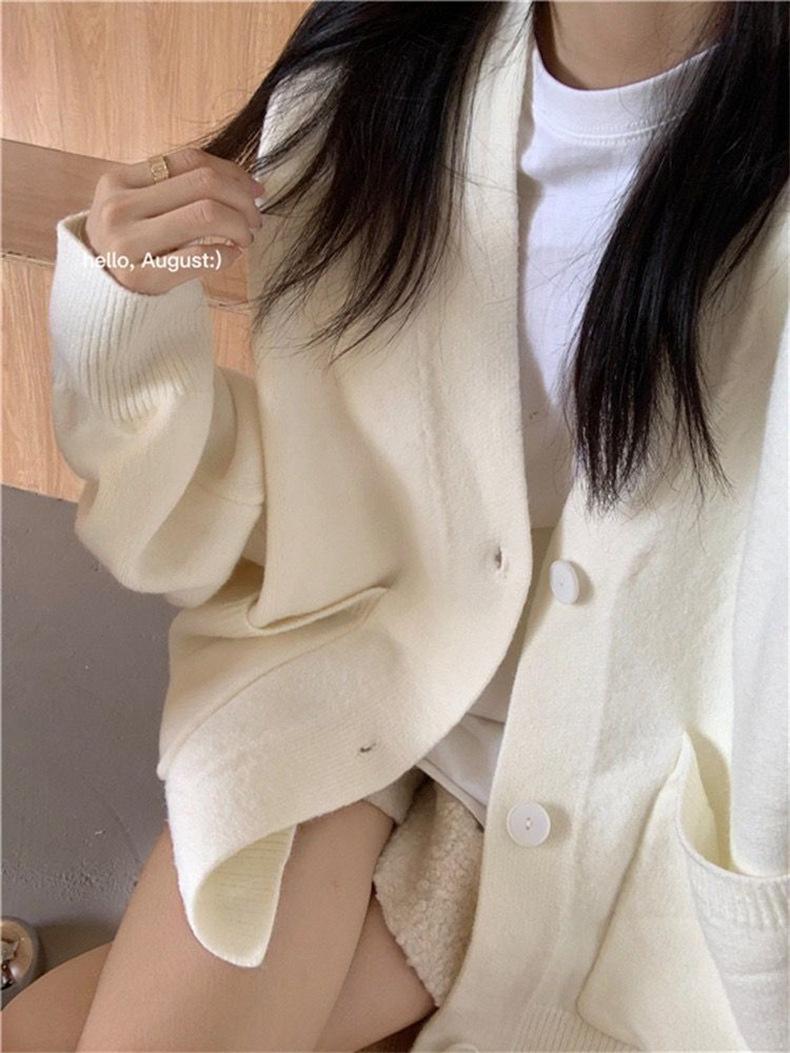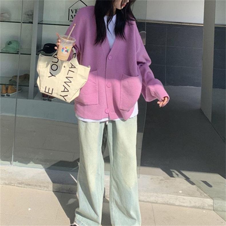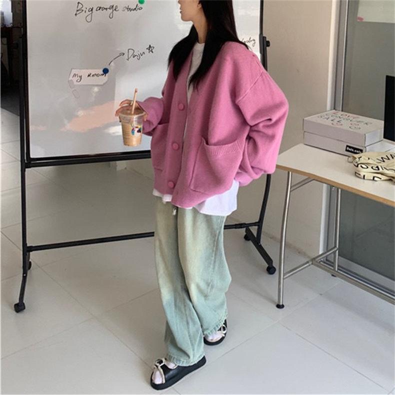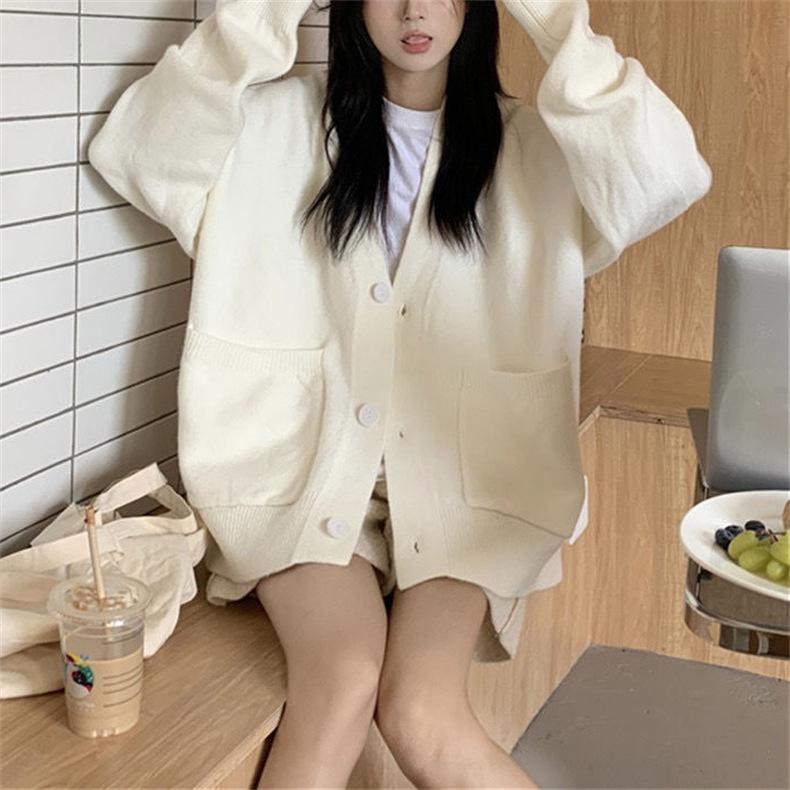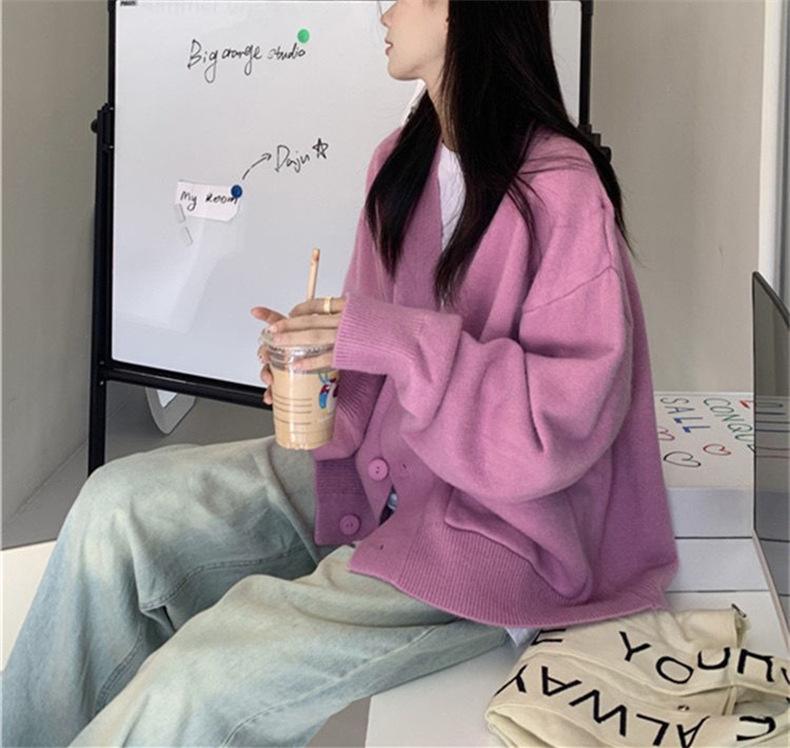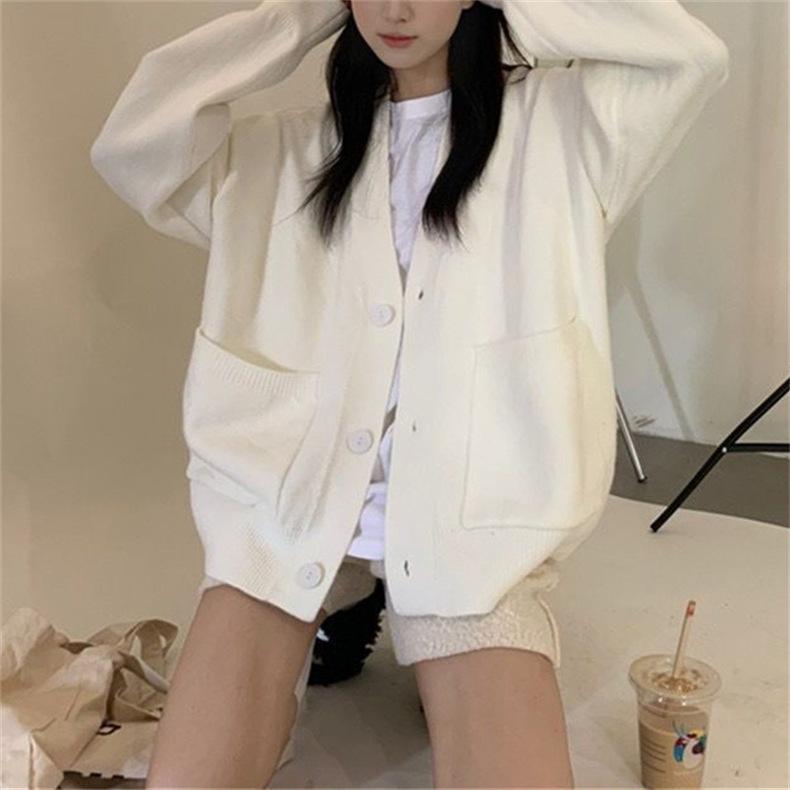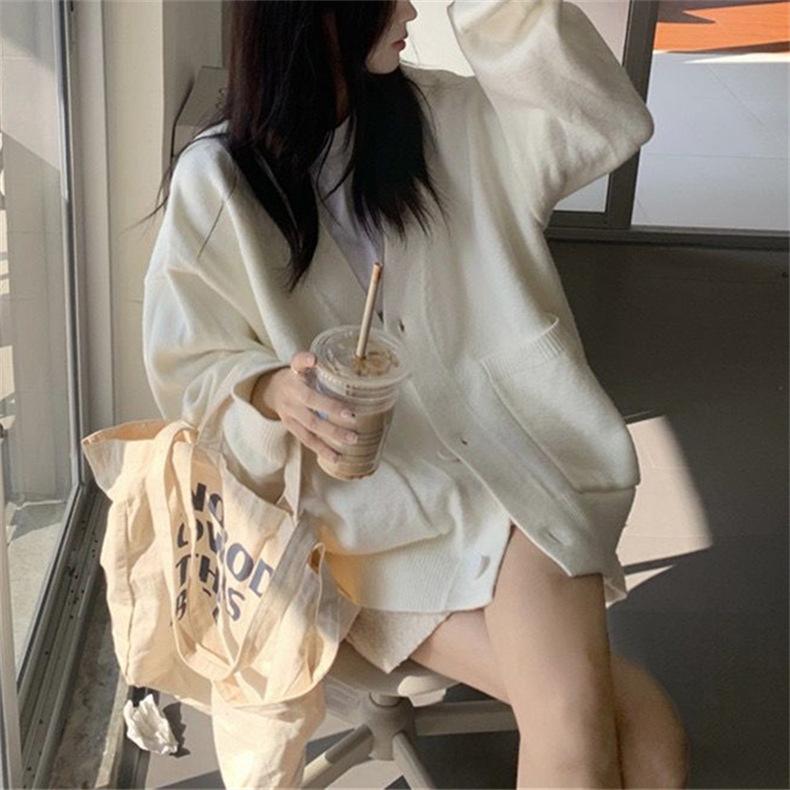 Suéter tipo cárdigan de otoño e invierno para mujer, nuevo estilo holgado, suave y encerado, de punto, con cuello en V