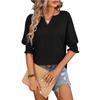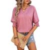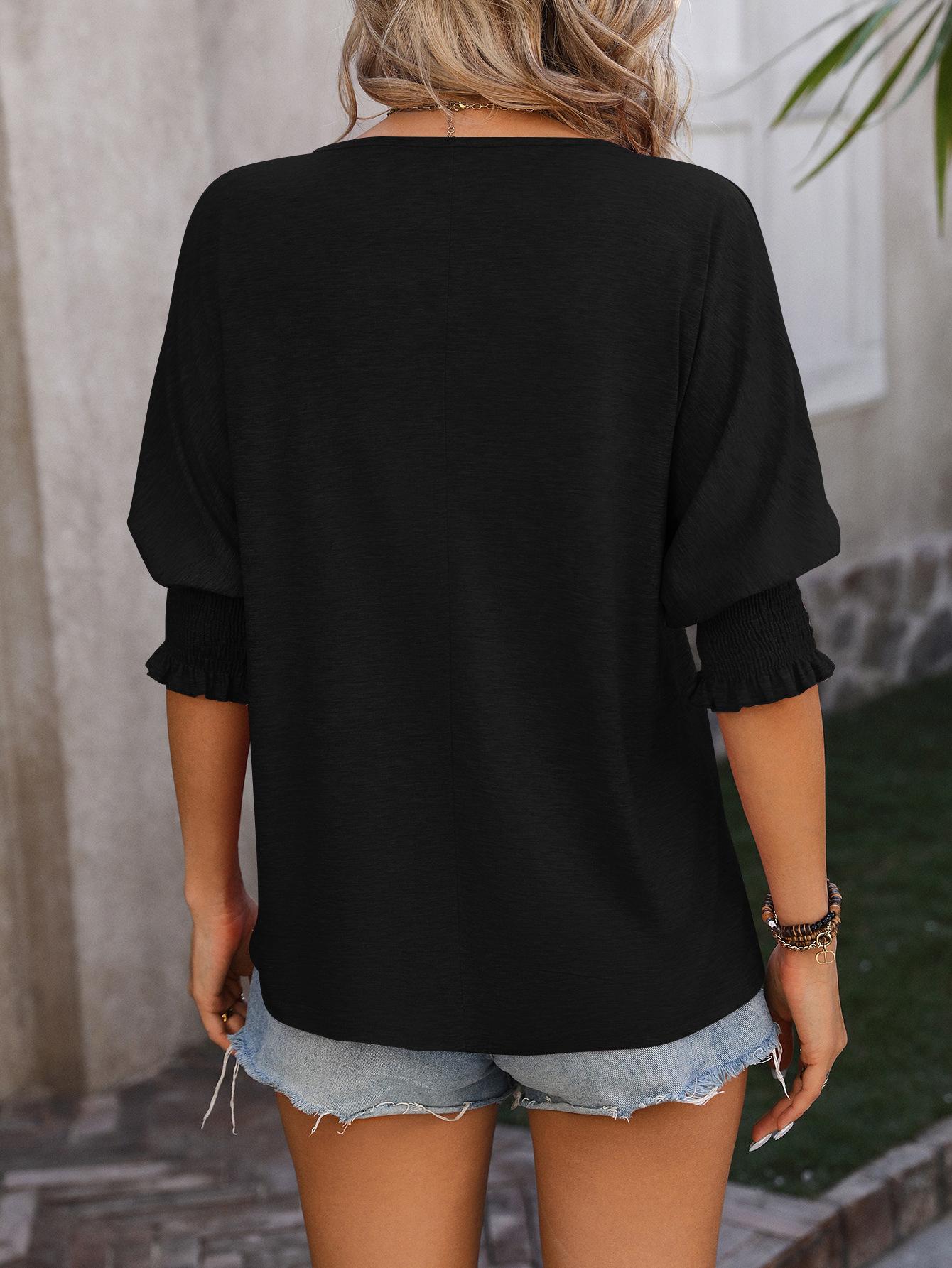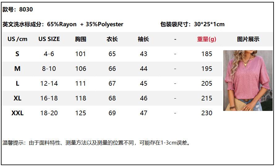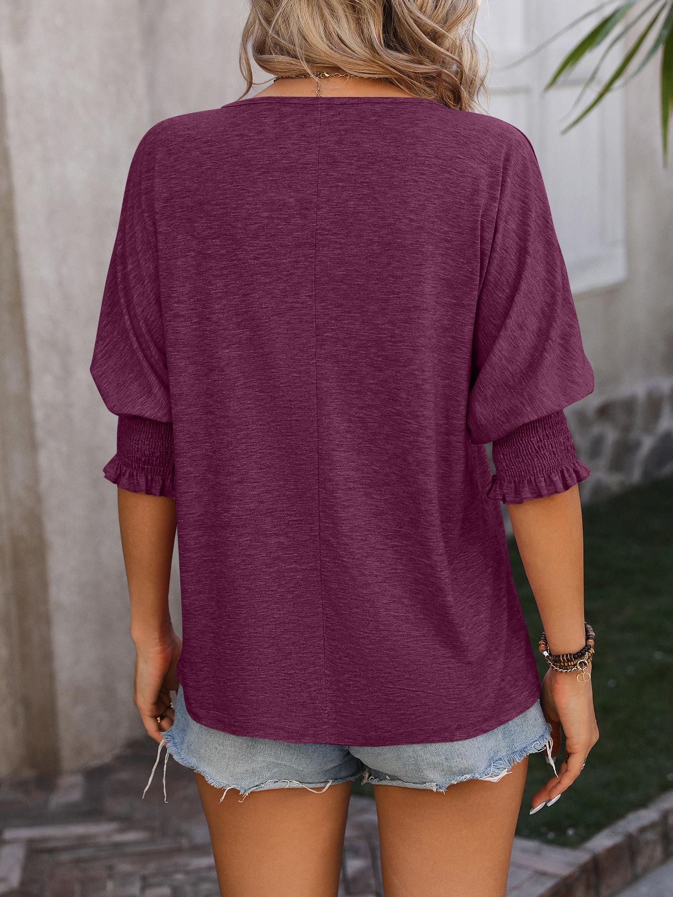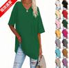 Camiseta de algodón colorida con cuello en V y mangas murciélago para mujer, ropa transfronteriza europea y americana de Amazon, verano 2024.