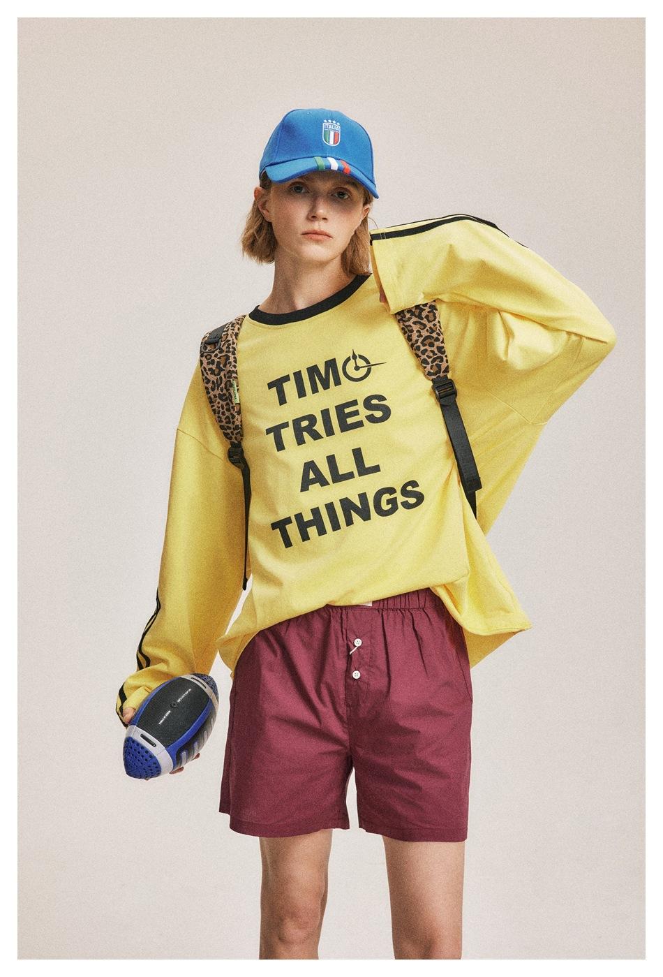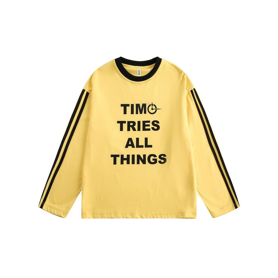 STAFFPICK Otoño Nuevo Marca de Moda Urbana Top Rayado Suéter Cuello Redondo Camiseta Holgada de Manga Larga para Hombre y Mujer W159