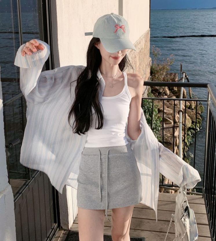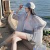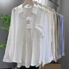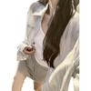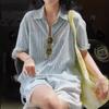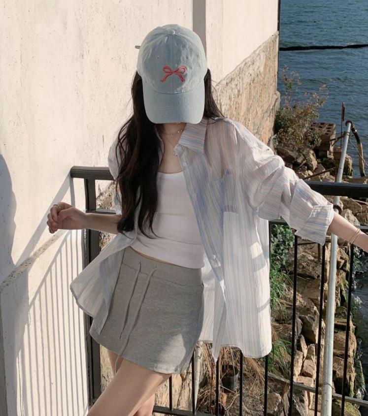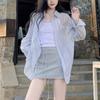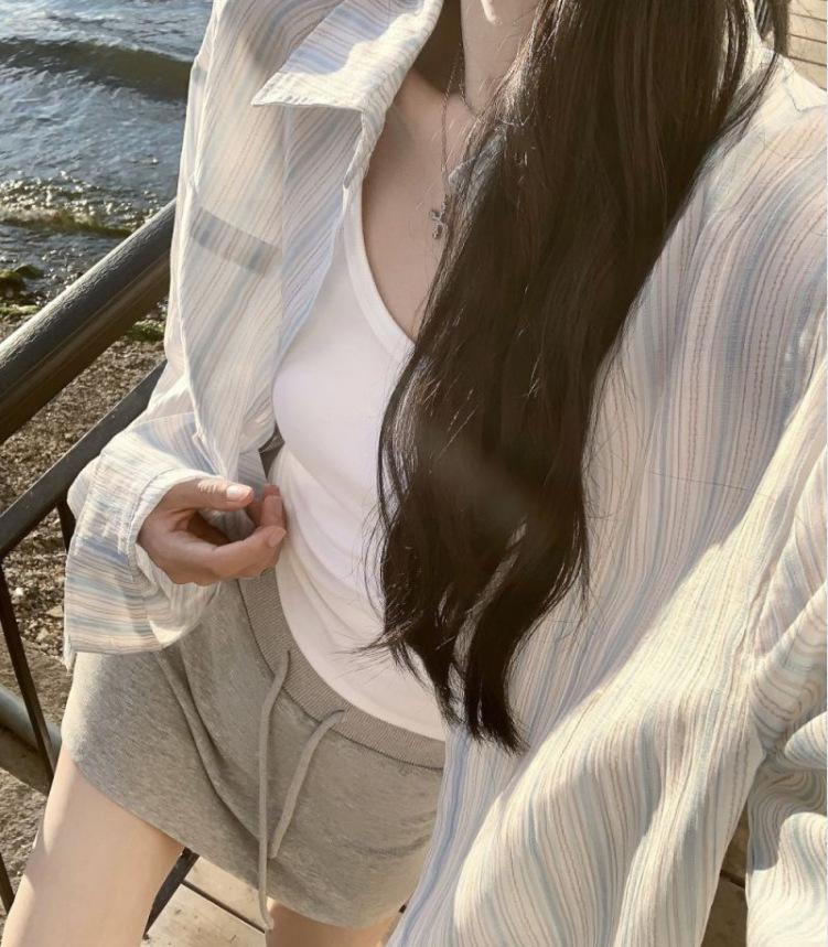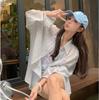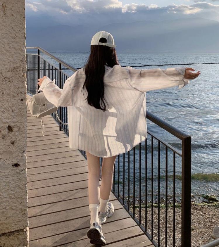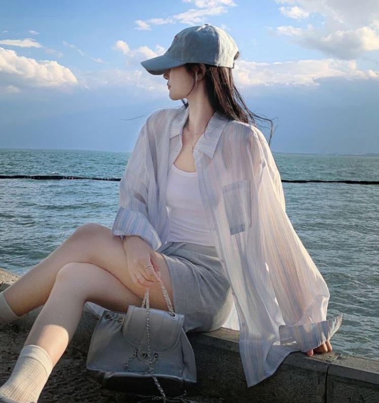 Camisa Holgada de Manga Larga a Rayas con Protección Solar Camisa Azul para Mujer Verano Combinación Universal Top Holgado Camisa con Sentido de Diseño Elegante