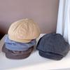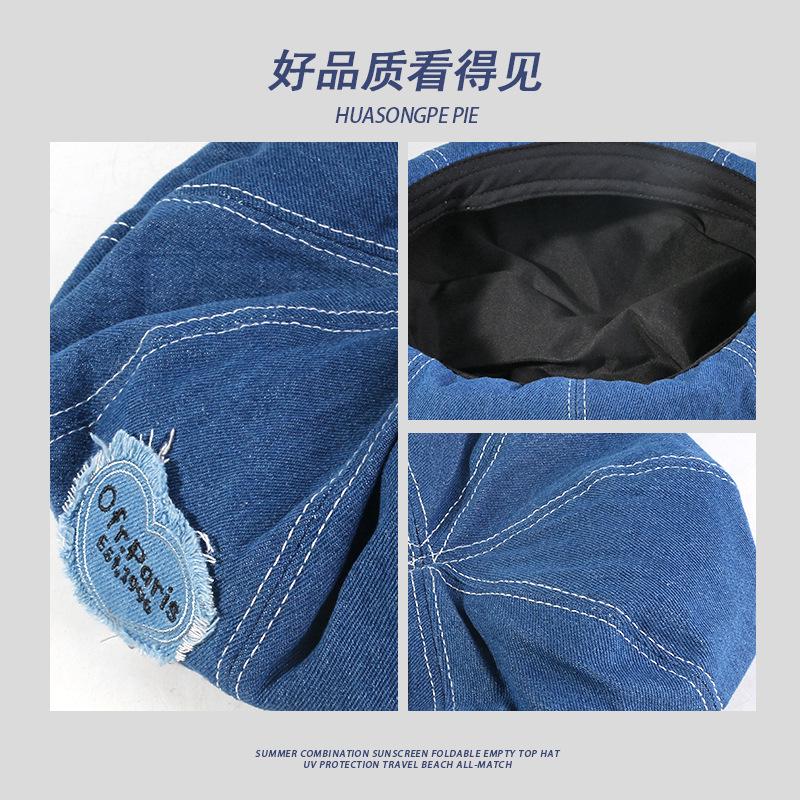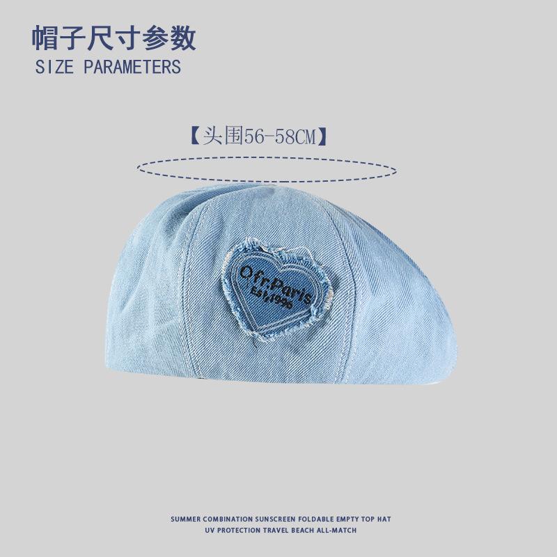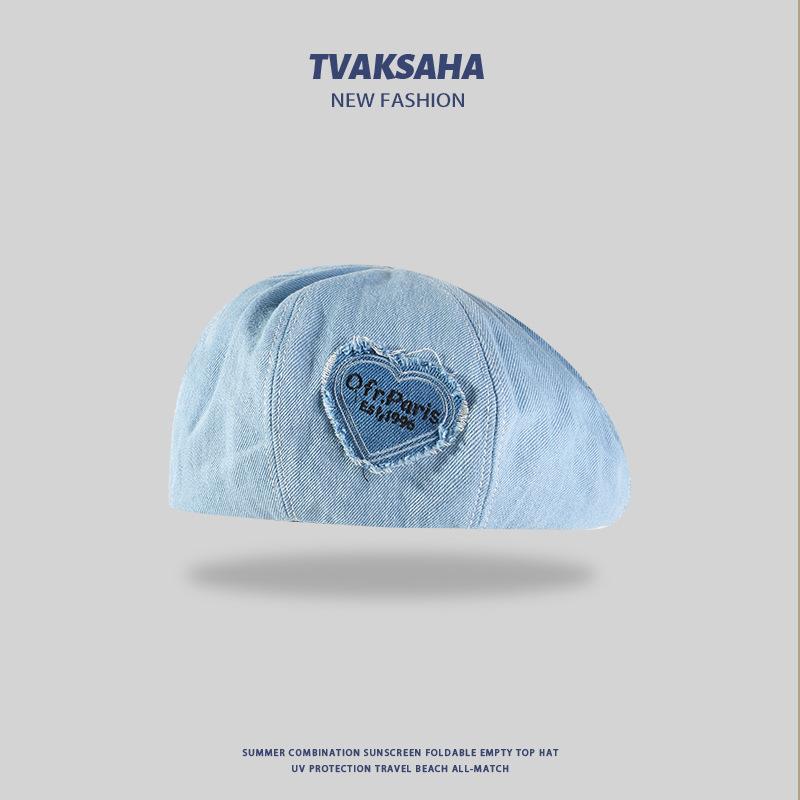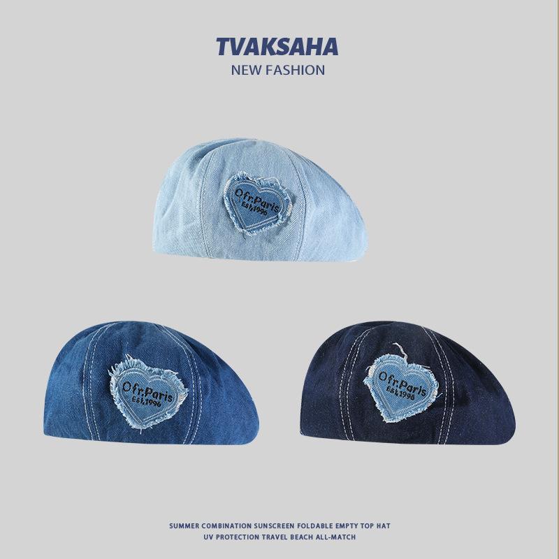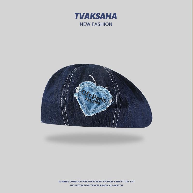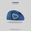 Boina de mezclilla de amor para mujer, estilo japonés retro, primavera y verano, gorro de repartidor de periódicos nuevo, estilo Ins de Hong Kong, que muestra la cara pequeña, sombrero de pequeño pintor