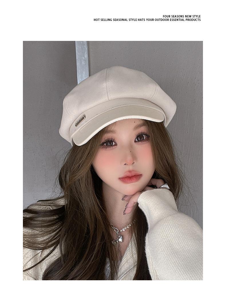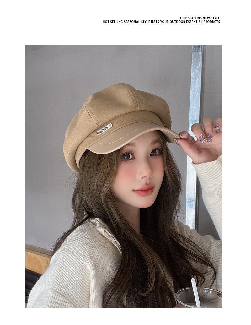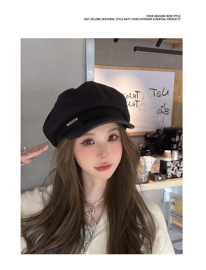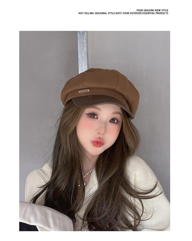 Sombrero octogonal de lana para mujer otoño e invierno estilo retro simple circunferencia de cabeza grande sombrero de pintor boina pequeña británica combinable