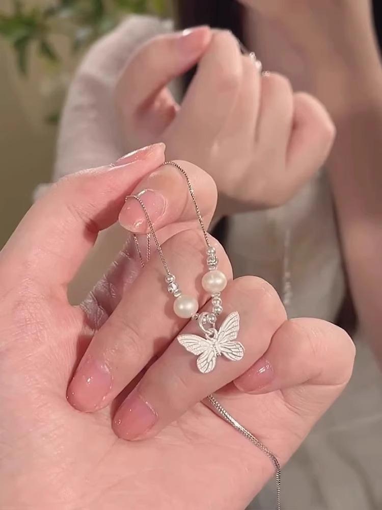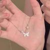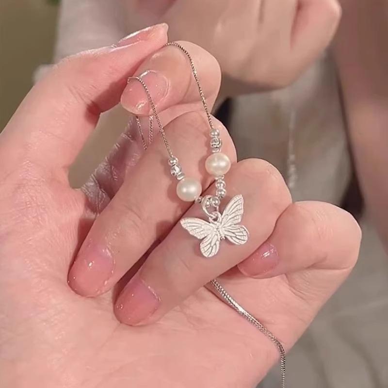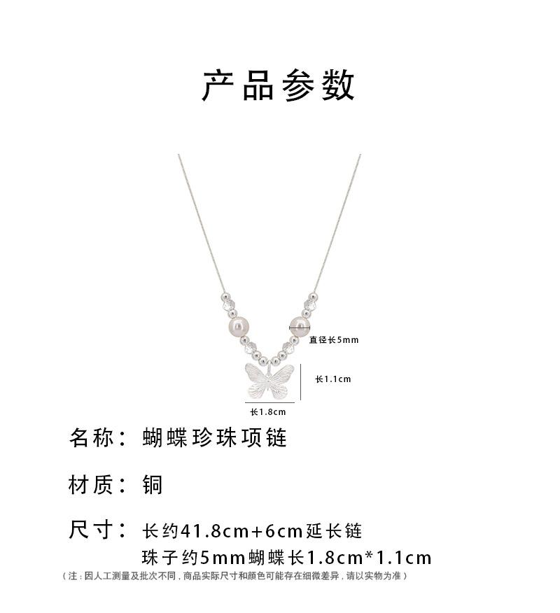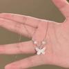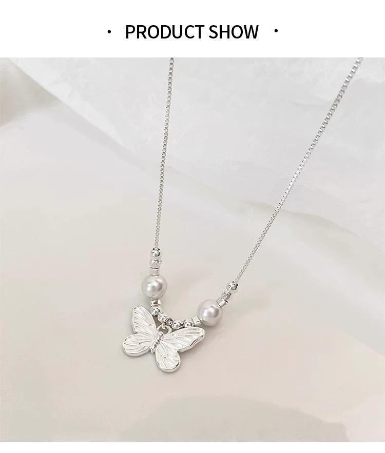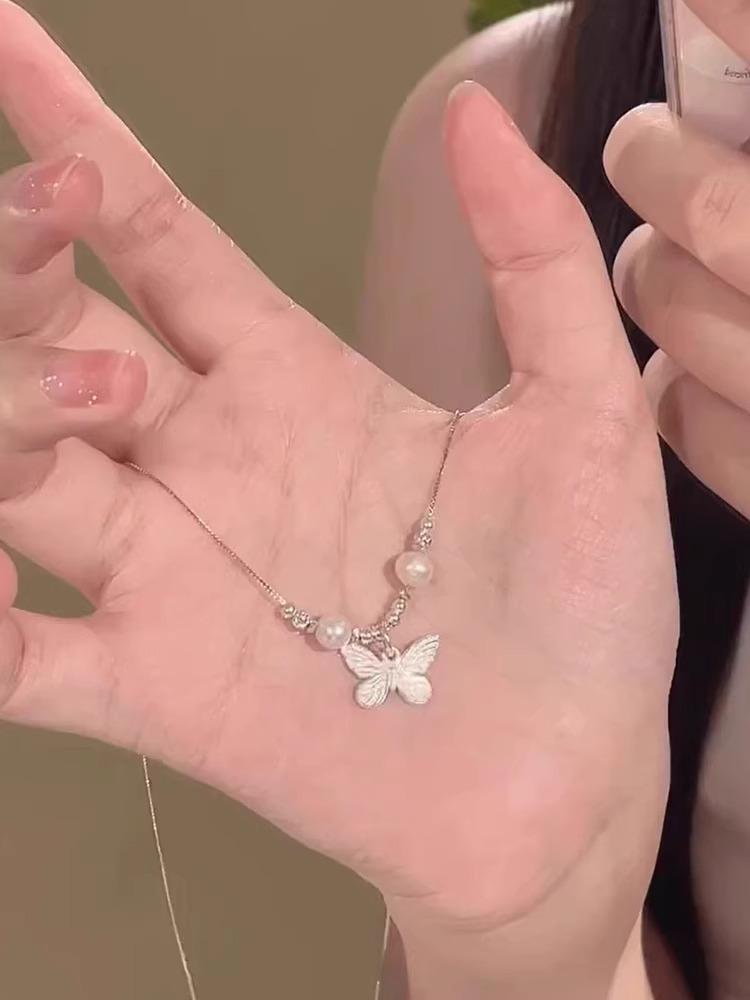 Collar con colgante de mariposa de metal perlado para mujer, estilo francés, retro, sencillo, combinable y elegante.