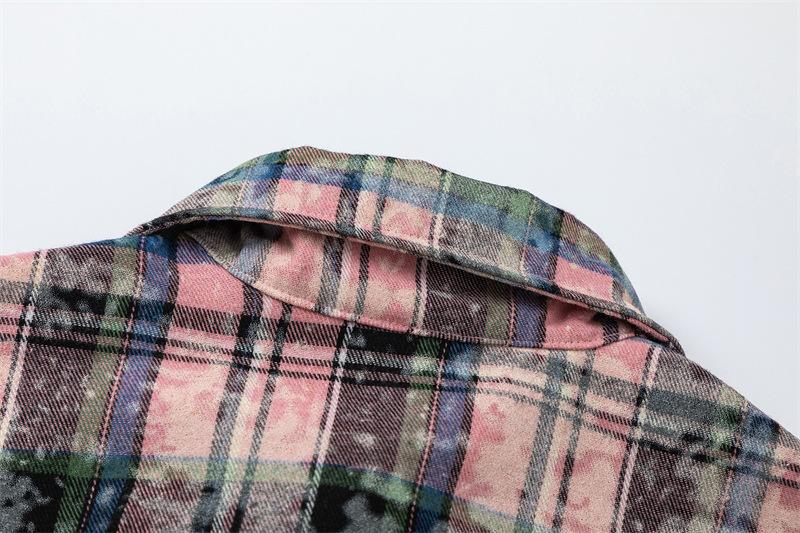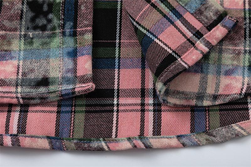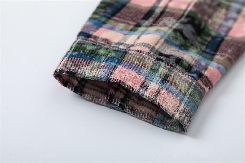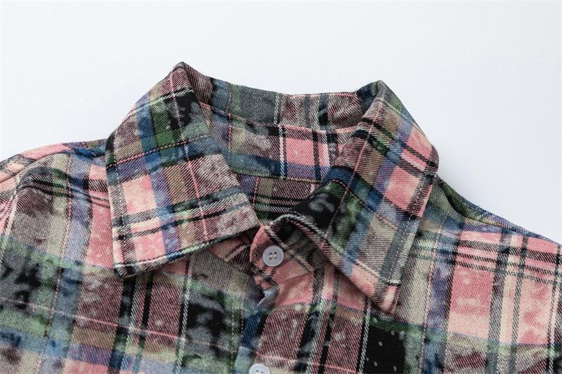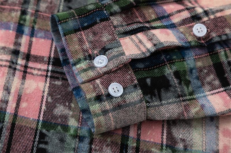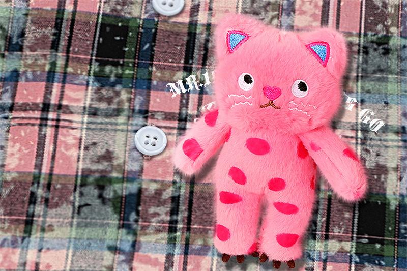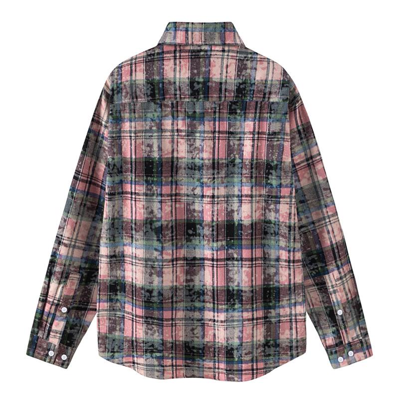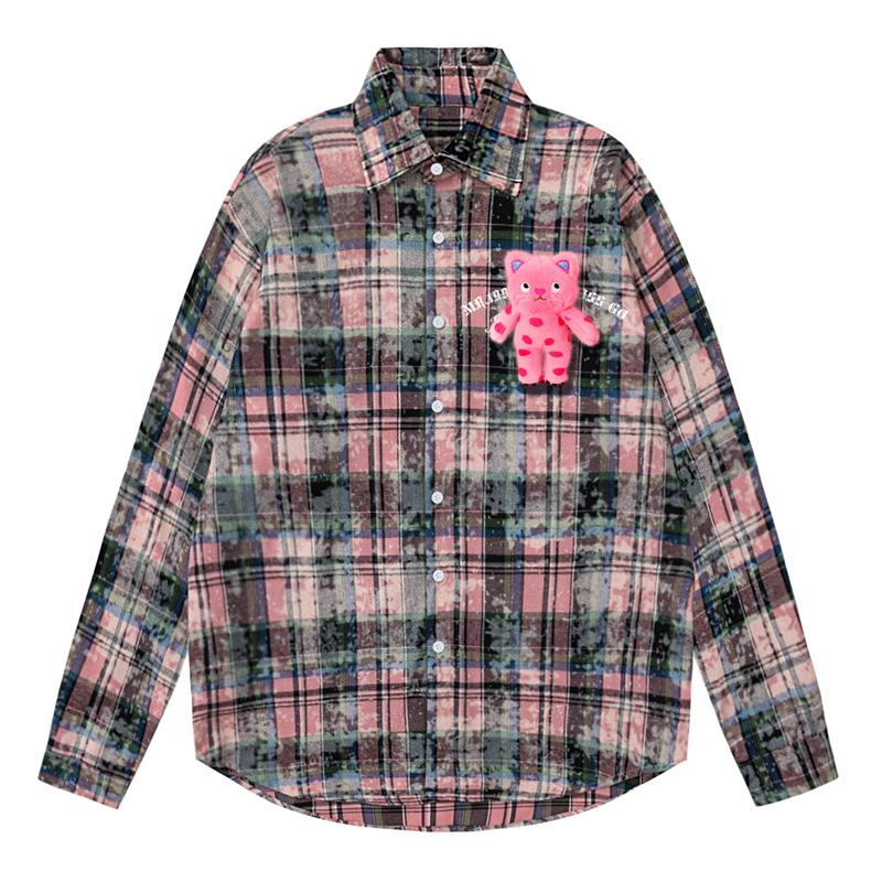 Camisa de manga larga a cuadros con dibujos de gatos americanos para hombre y mujer, estilo urbano, lavada, estilo antiguo, de principios de otoño, chaqueta interior