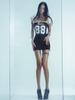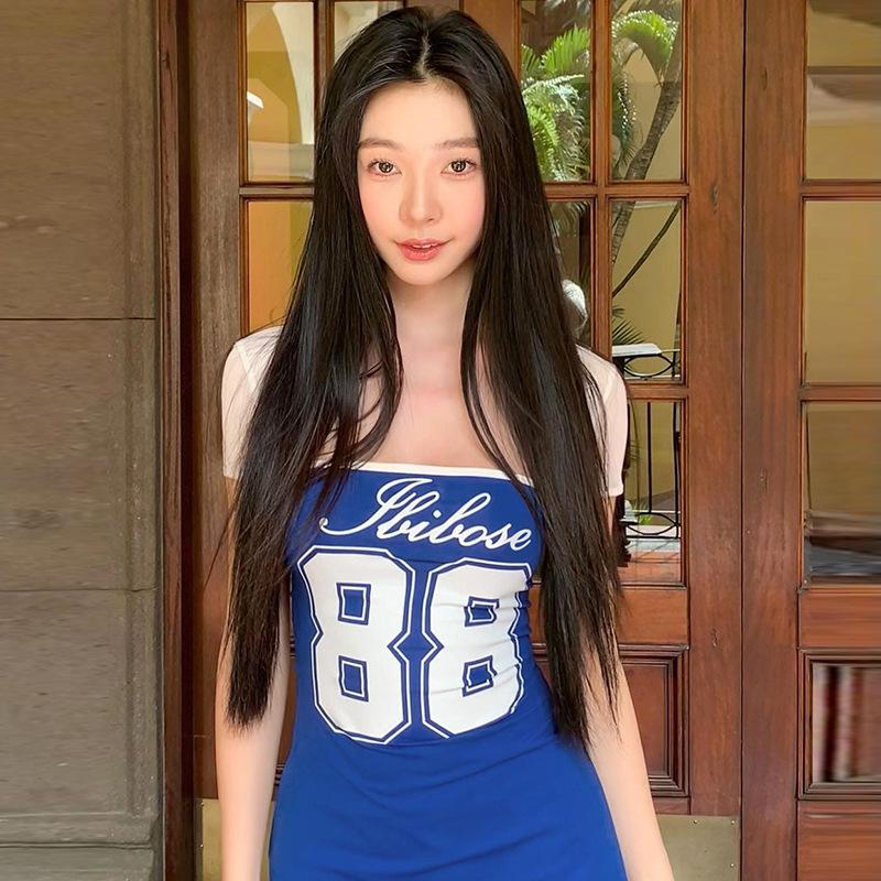 Ropa de mujer estilo europeo y americano, primavera y verano 2025, nuevo top de tubo sexy, vestido con abertura y cintura a juego en blanco y negro |