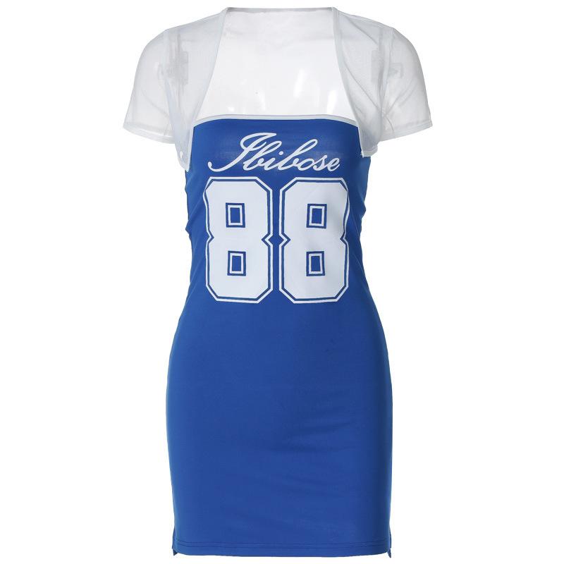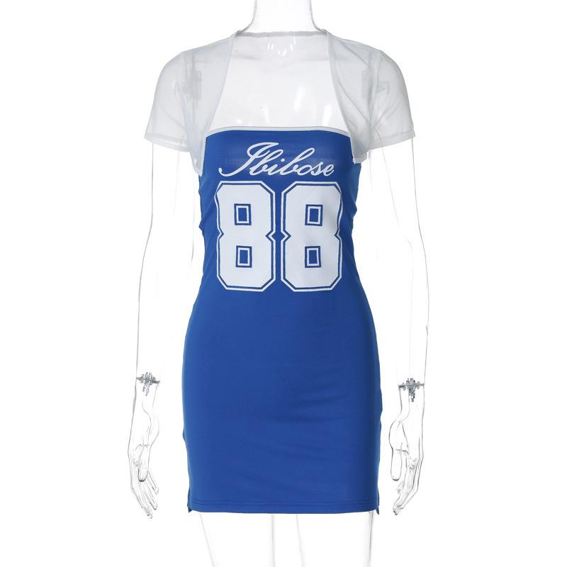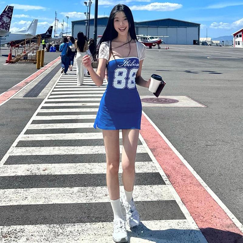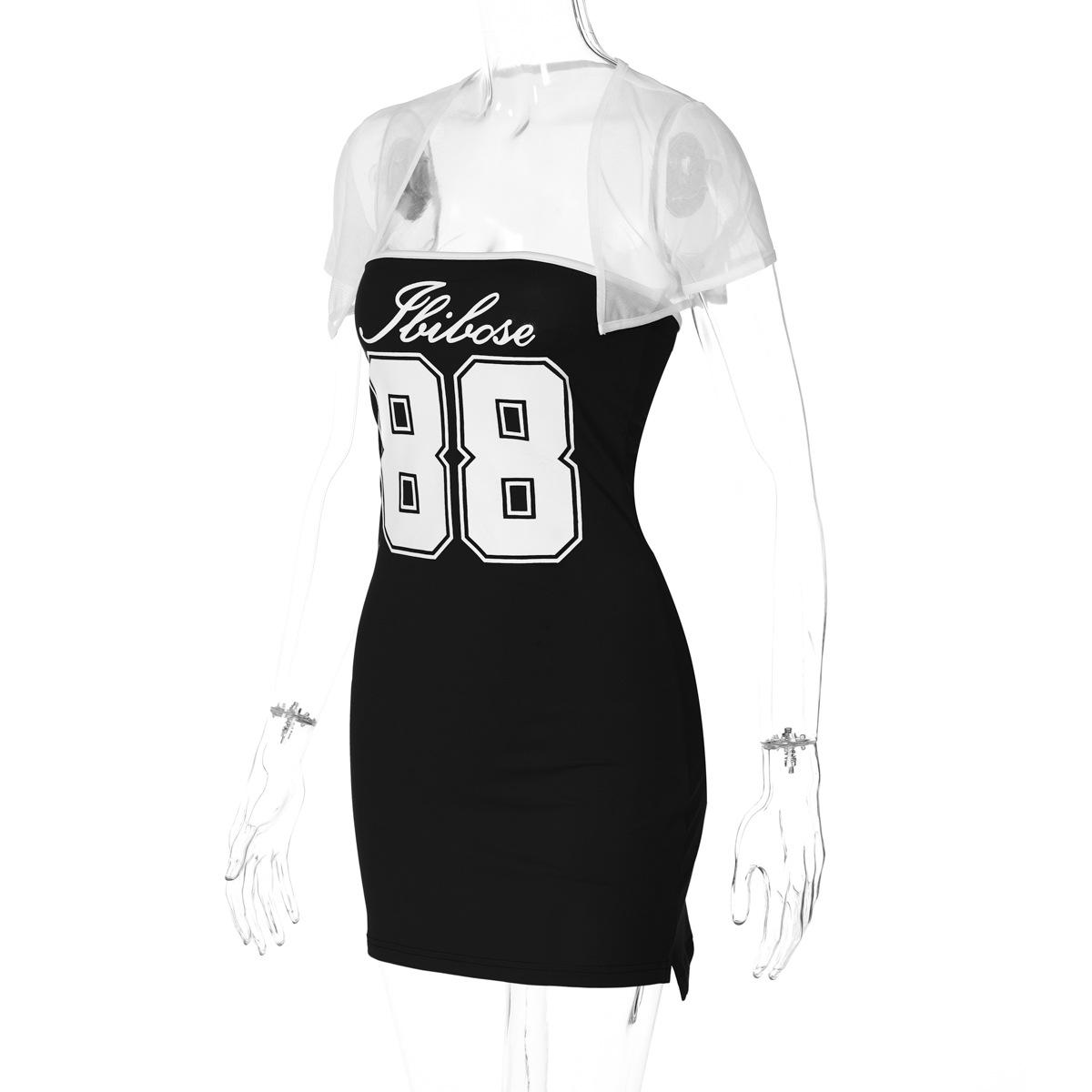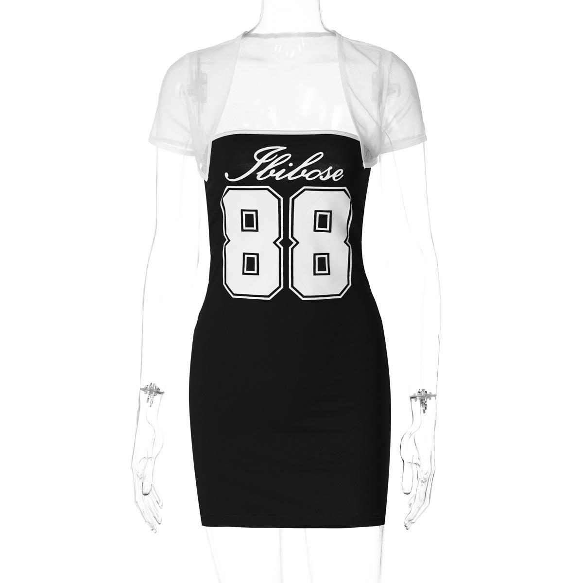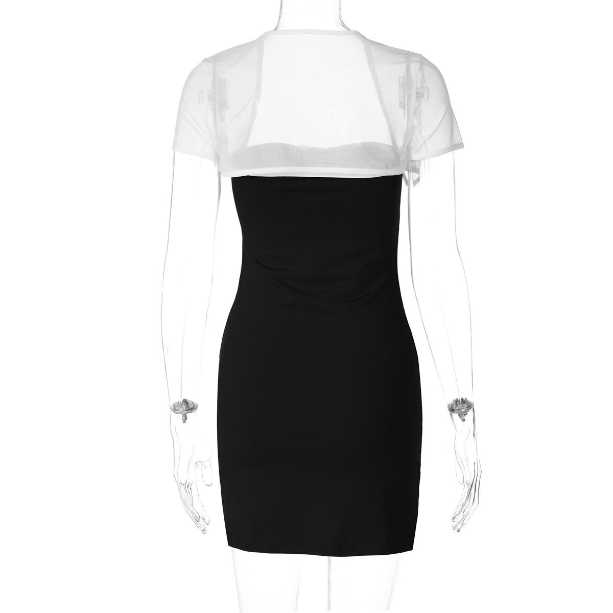 Ropa de mujer europea y americana, primavera 2025, nueva, sexy, estilo puro deseo, top de tubo, vestido de empalme de malla con cuello de una línea |