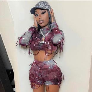 | YY23579 Vestido de lentejuelas colorido estilo europeo y americano 2023 otoño nuevo sexy falda larga delgada con tirantes huecos |