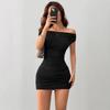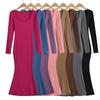 | YY23592 Otoño nuevo sexy cadera envuelta falda larga estilo de moda temperamento pieza caliente ajustado vestido de cuello de una línea femenina |