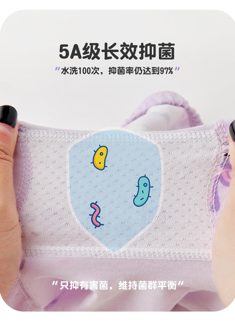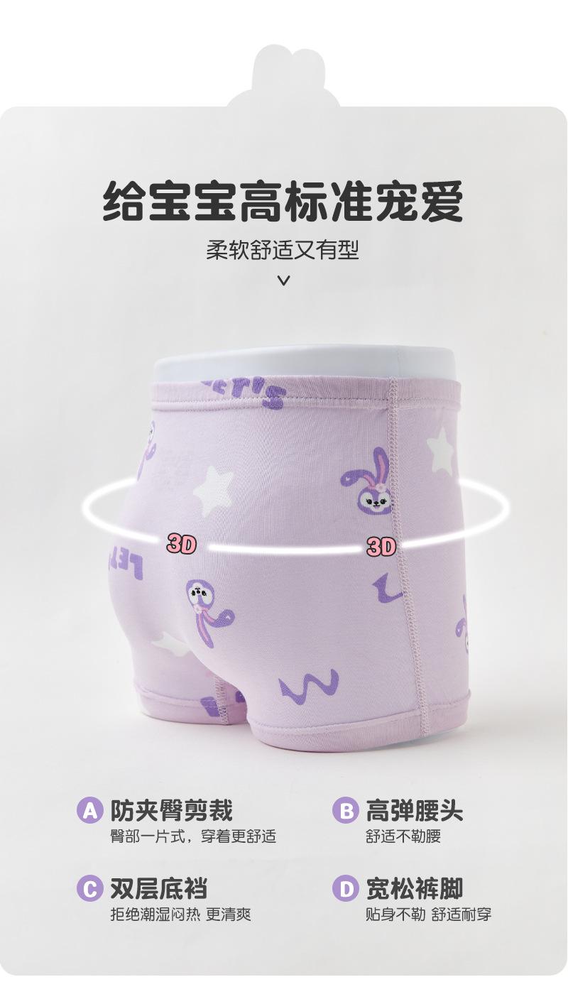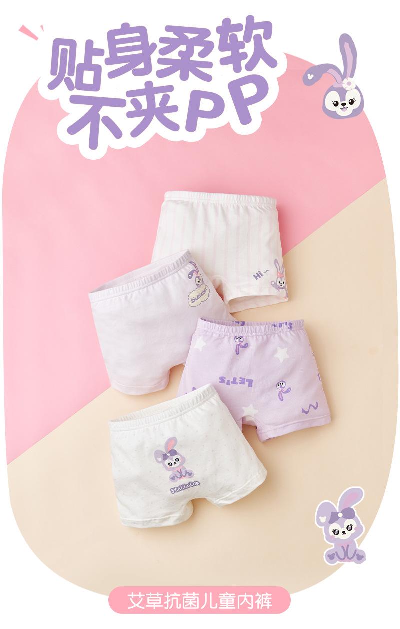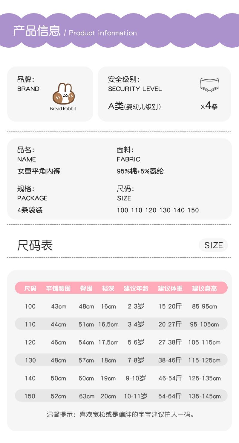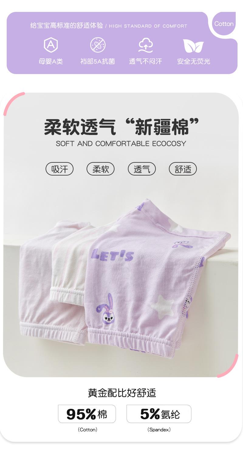 Ropa Interior para Niñas Bread Rabbit 5A Algodón Antibacterial 2025 Nuevo Dibujo Animado Conejo Morado Bóxer