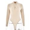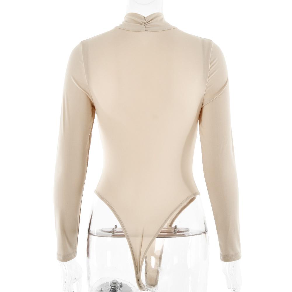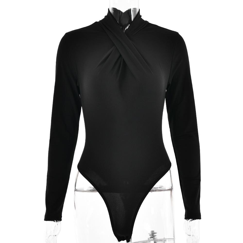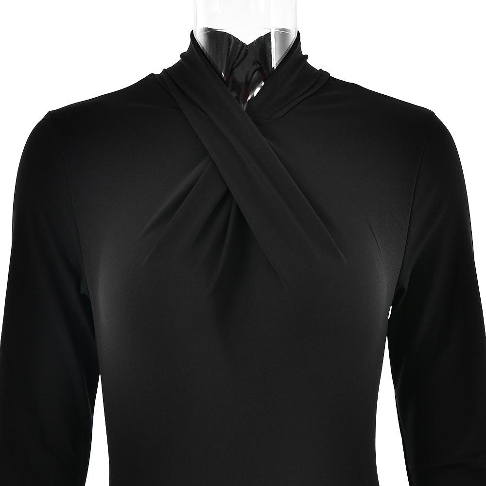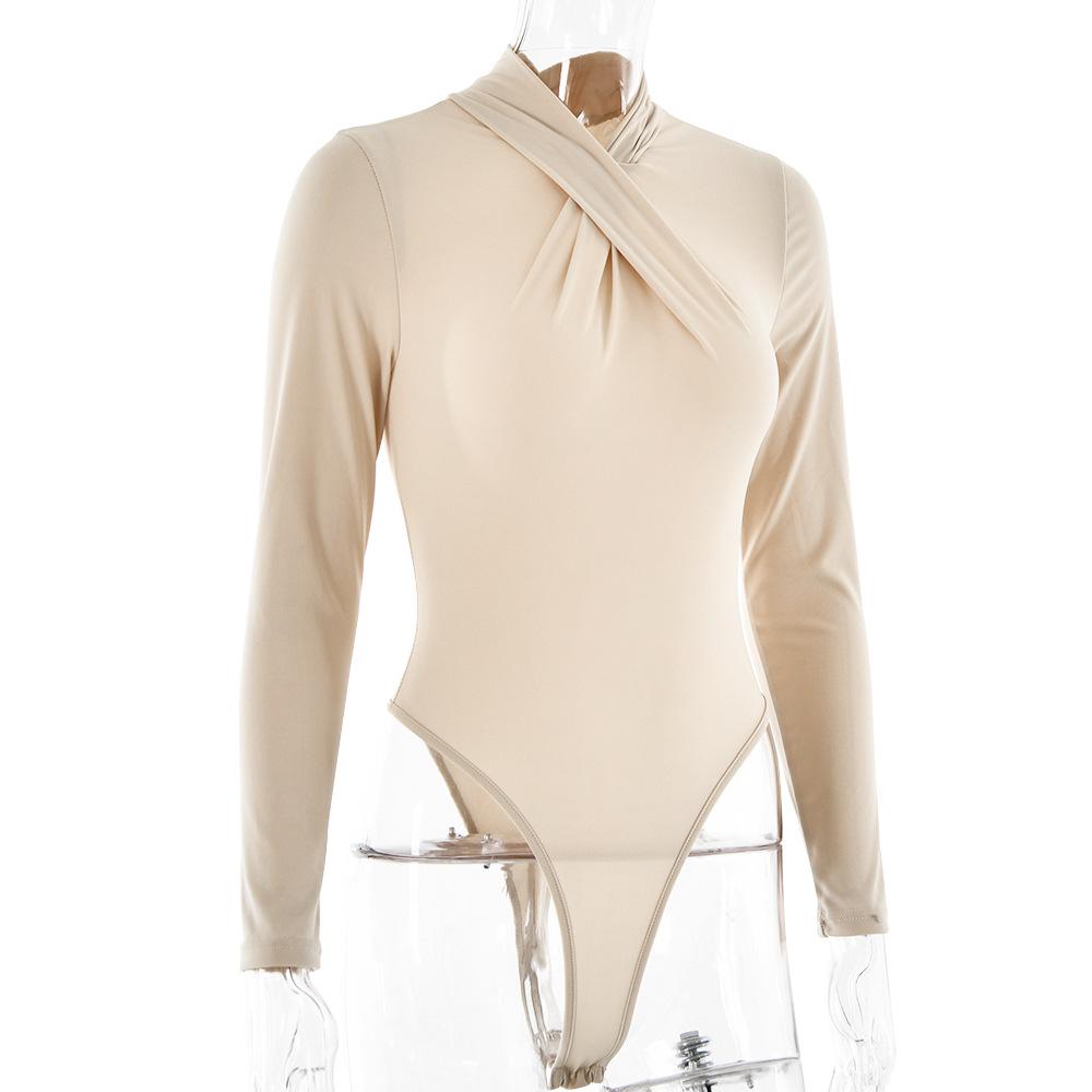 Mono de color sólido con costuras de manga larga ajustado con escote plisado cruzado de estilo europeo y americano de gran venta transfronteriza nuevo y sexy para chica