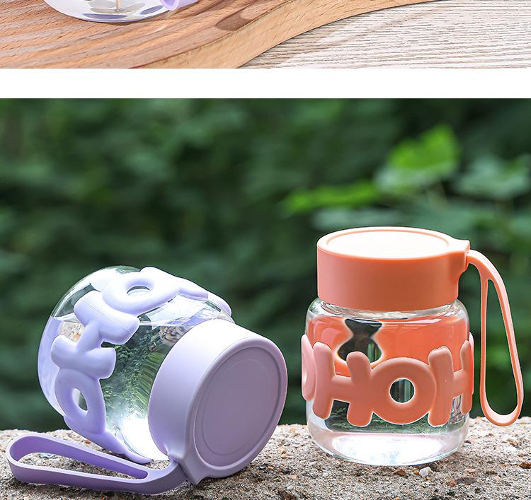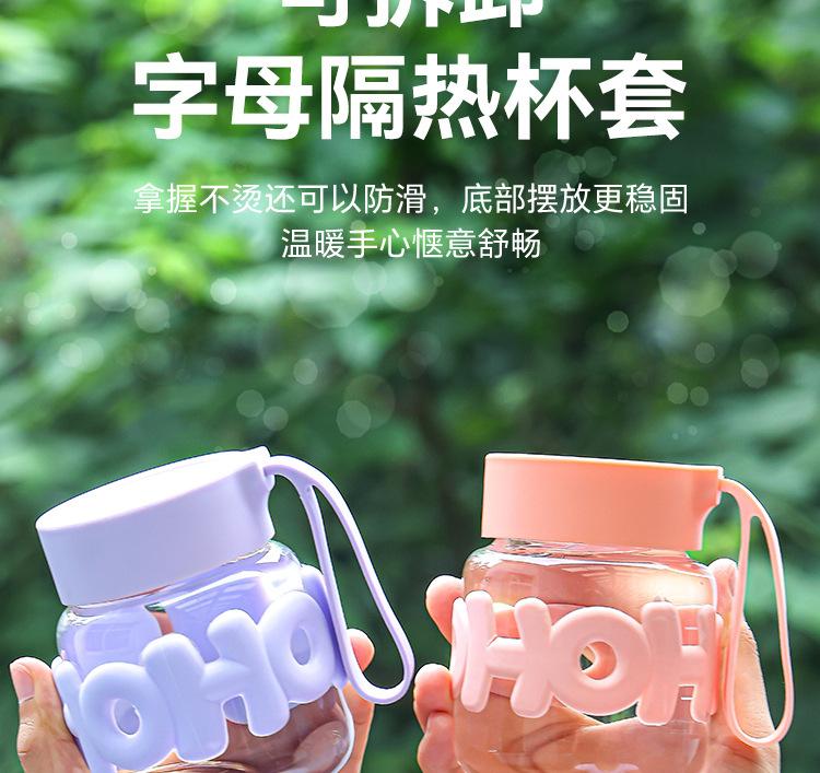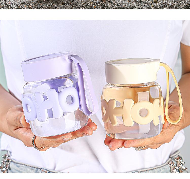 Taza portátil Chubby nueva, de vidrio portátil con tapa, taza de agua con aislamiento térmico, linda taza de regalo para llevar en la mano