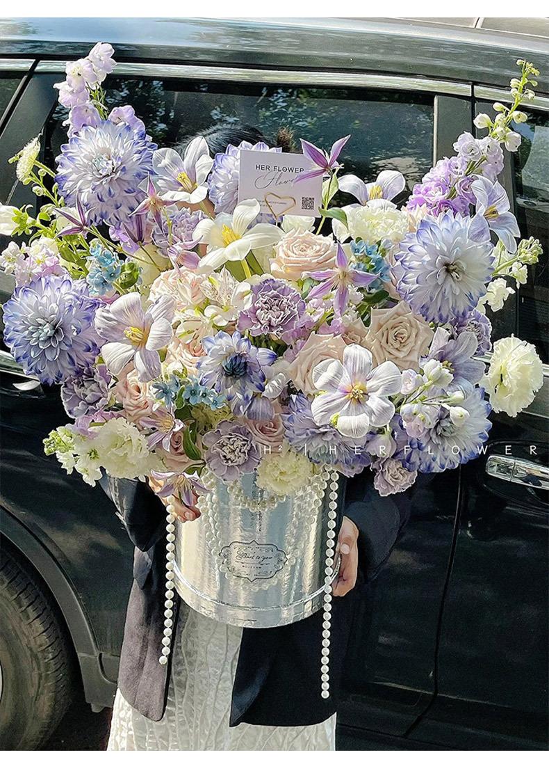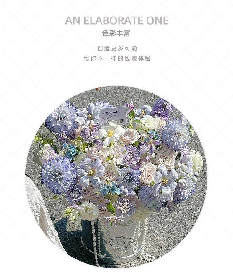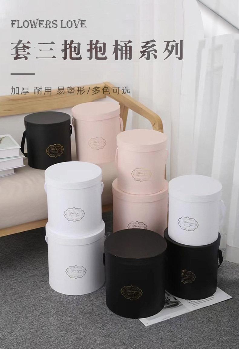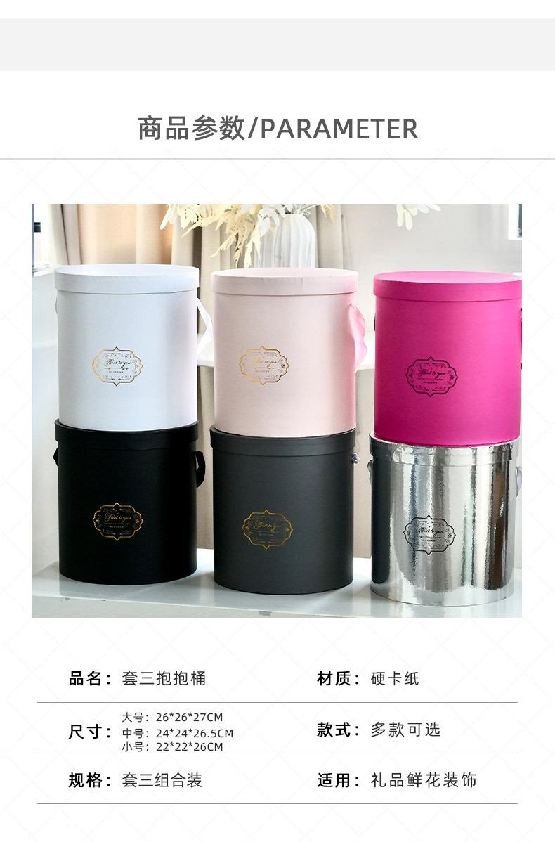 Cubo de abrazos para San Valentín, juego blanco, cubo de flores de tres rondas, caja de flores plateada, juego de flores, juego de flores, caja de regalo, materiales de embalaje para flores