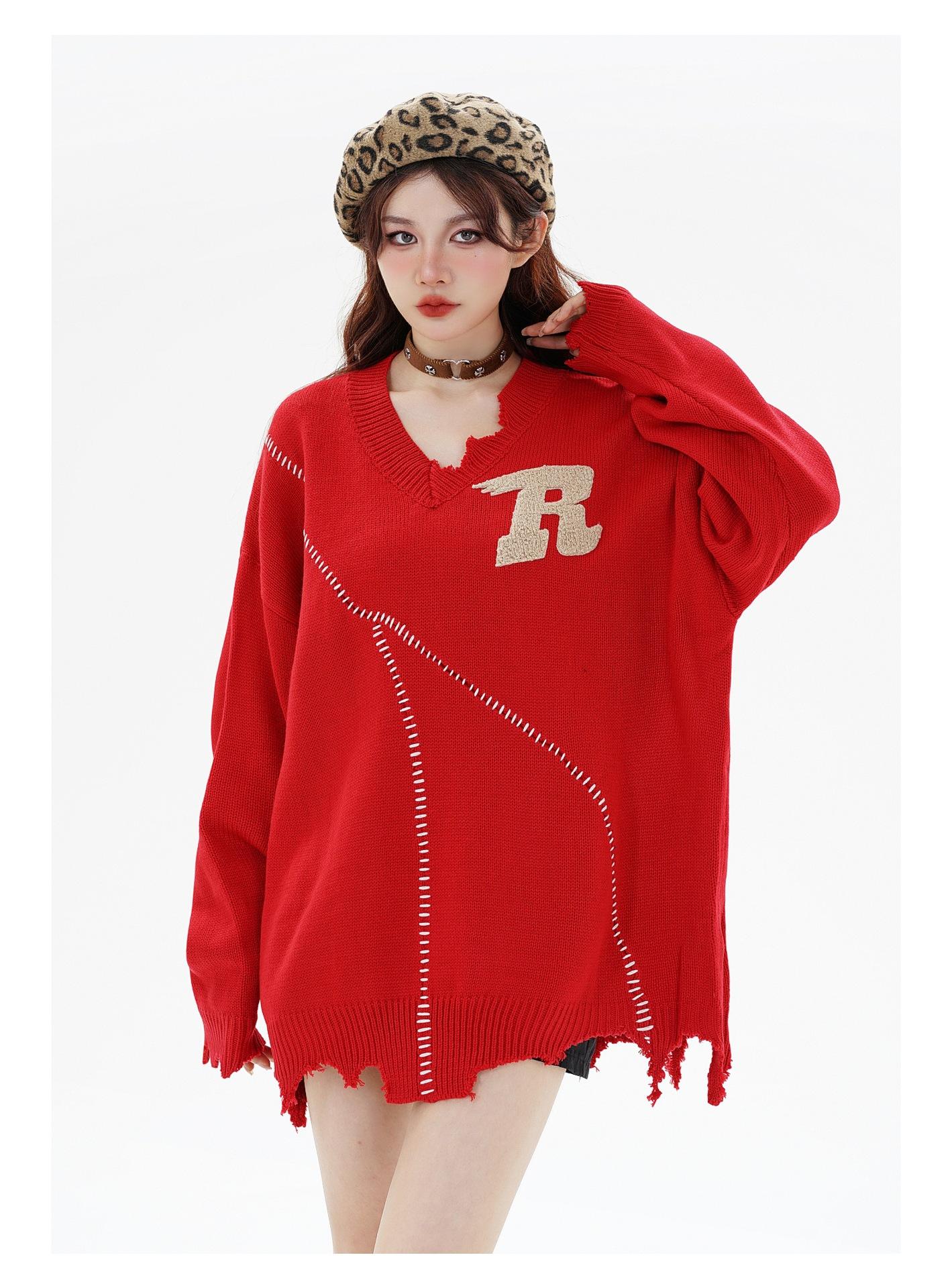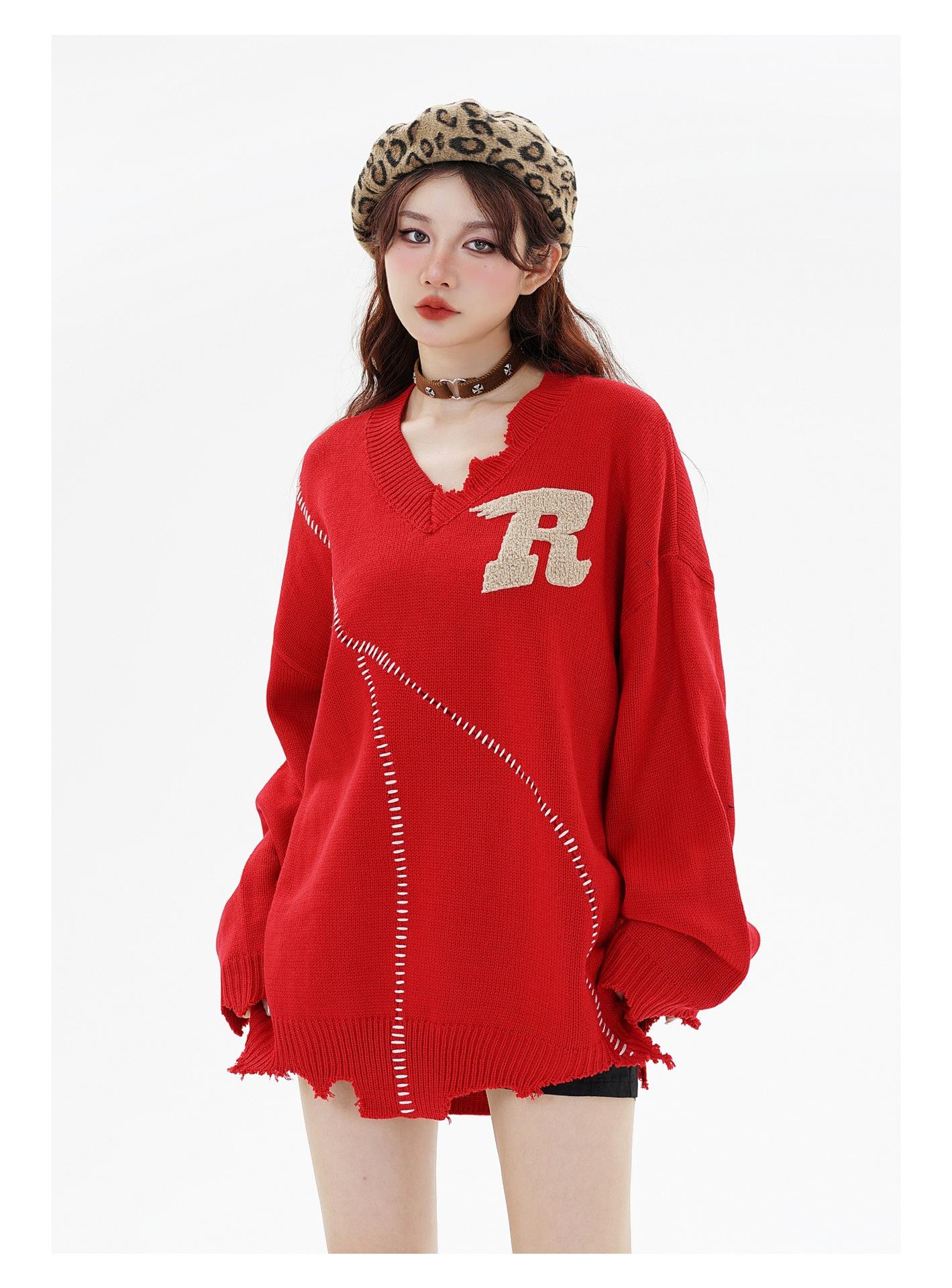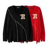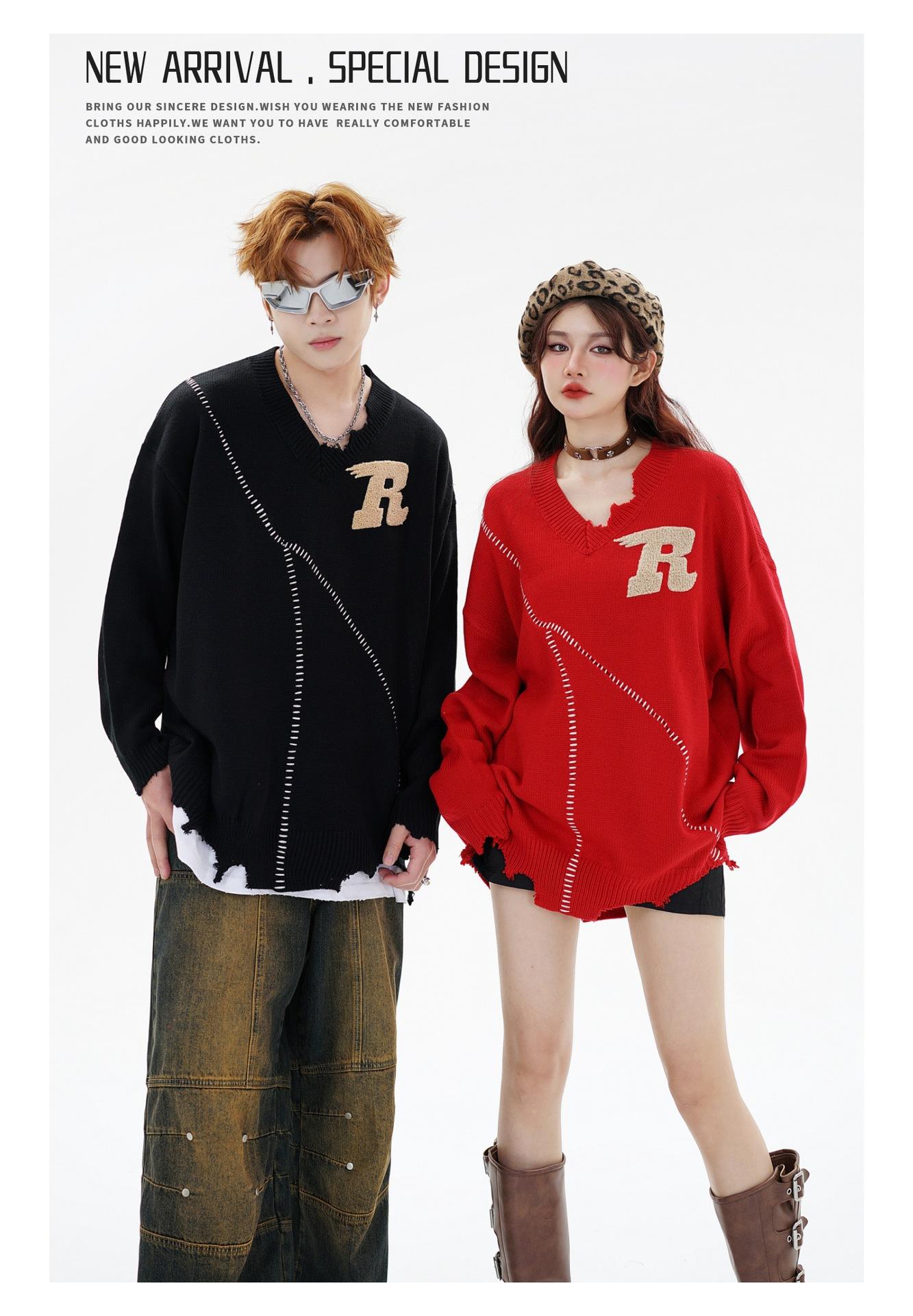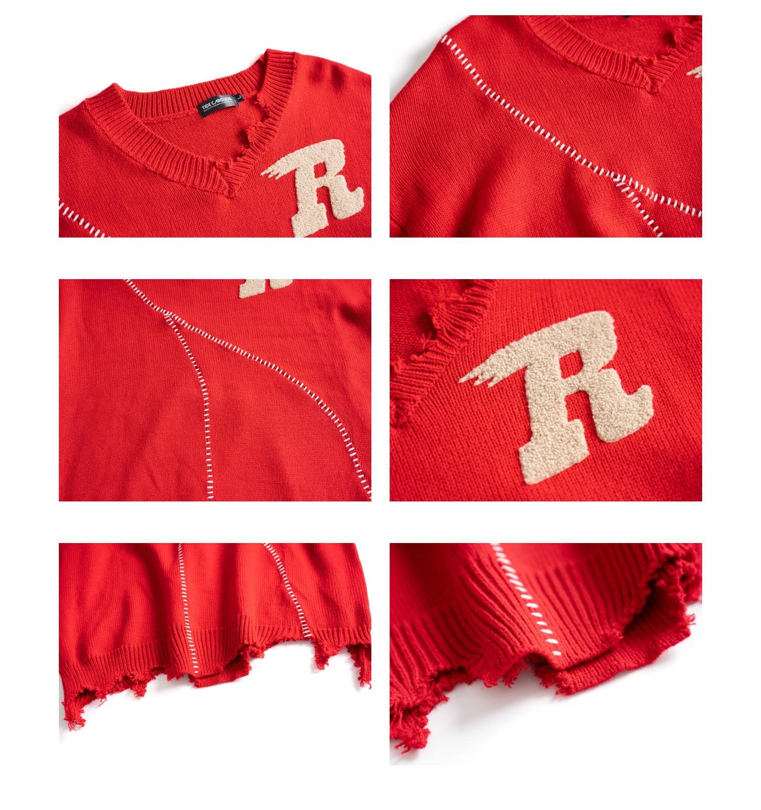TARJETA DE MAREA LOGO Otoño e Invierno Nueva Moda Cuello en V Corte de Toalla Bordado Letra Jacquard Manga Larga Suéter de Punto Trendy