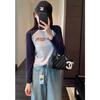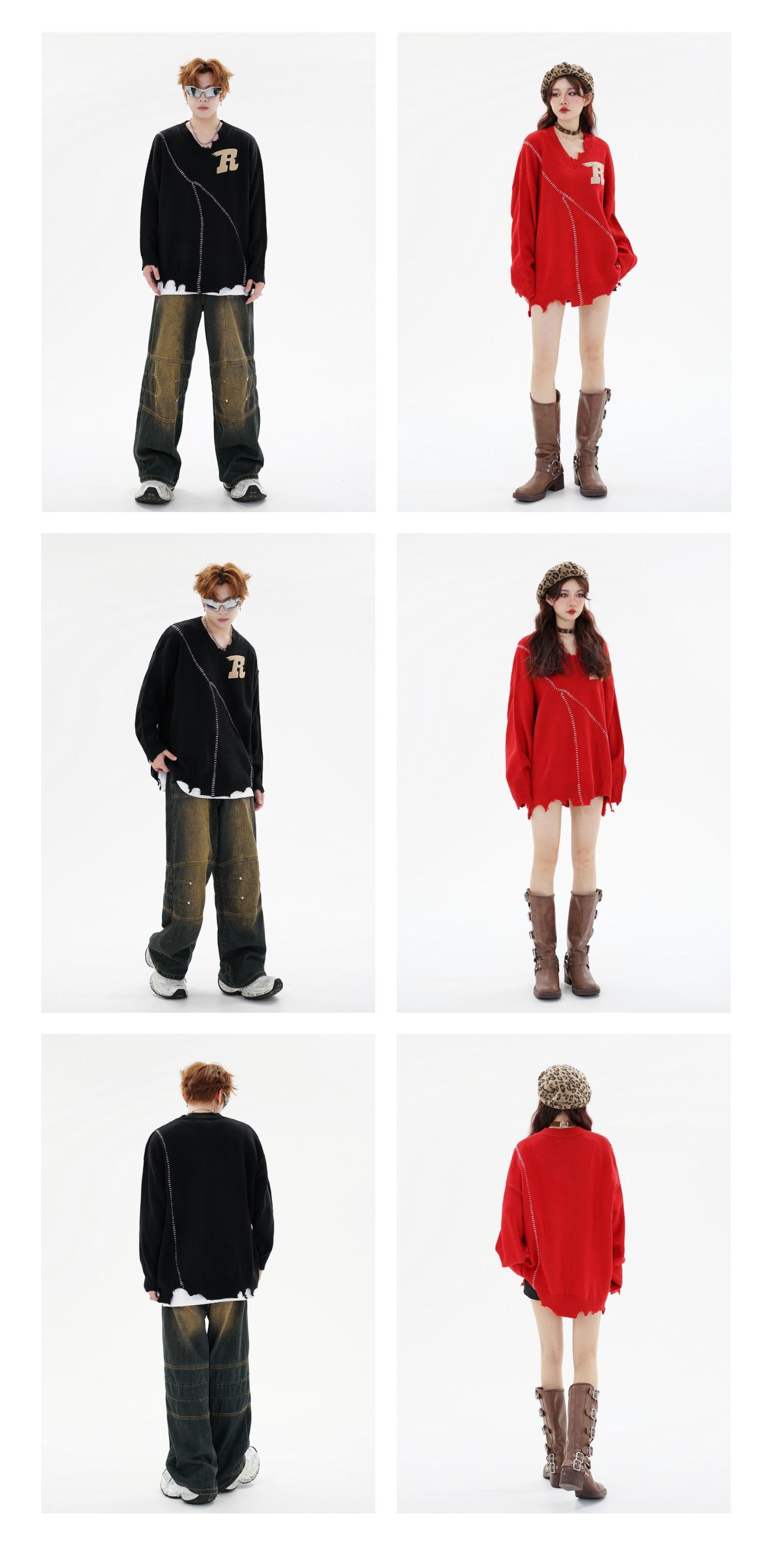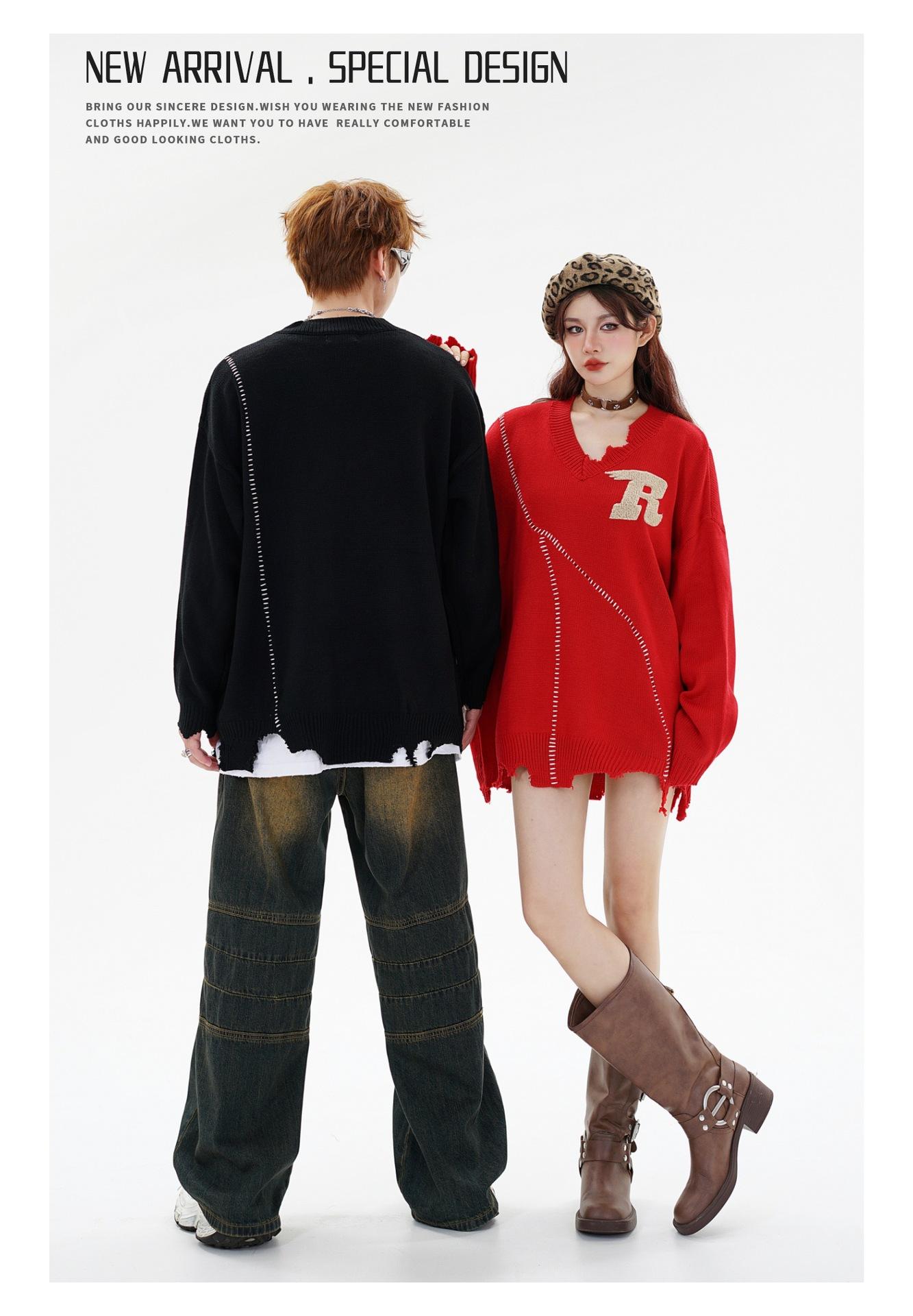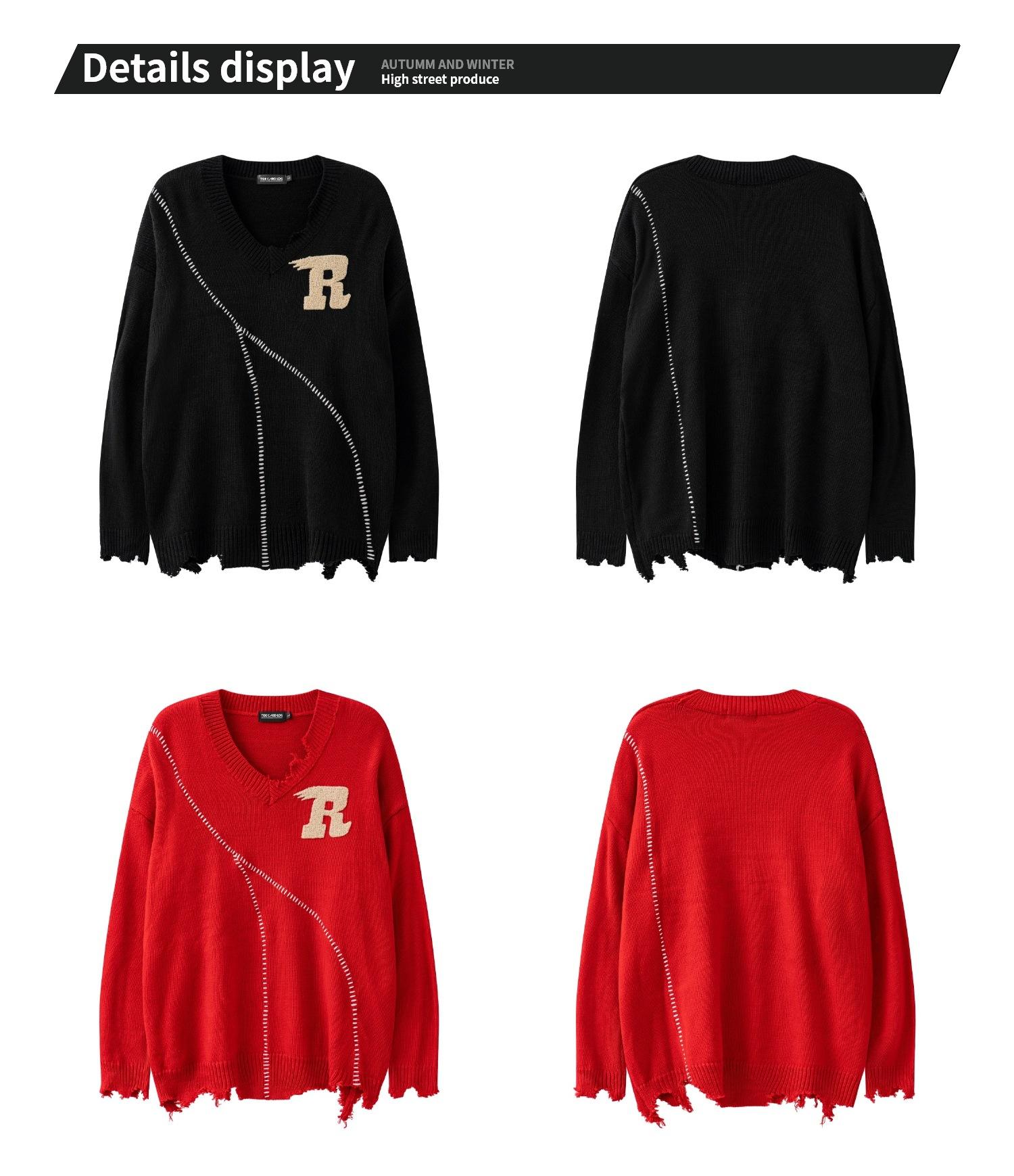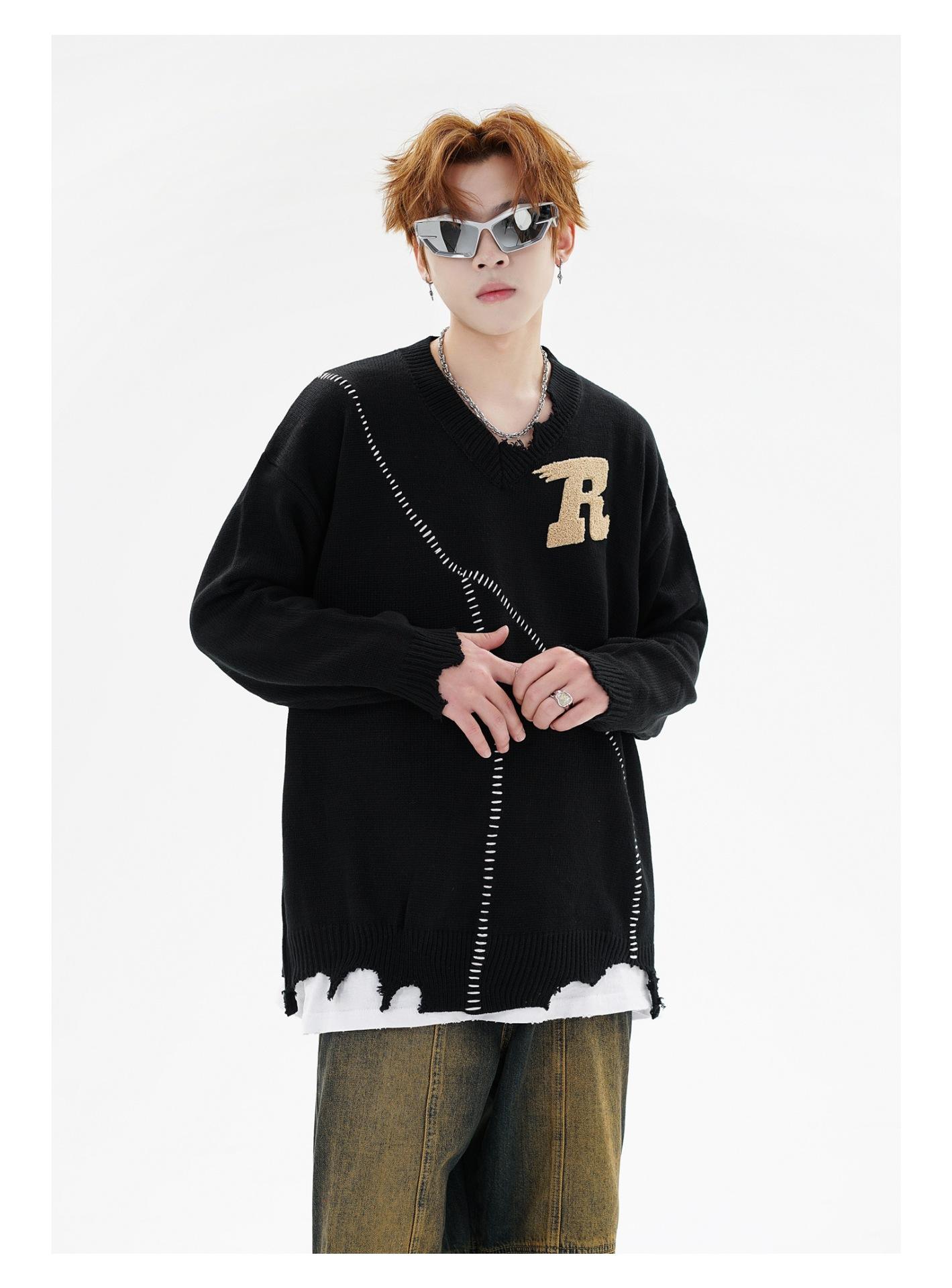 TARJETA DE MAREA LOGO Otoño e Invierno Nueva Moda Cuello en V Corte de Toalla Bordado Letra Jacquard Manga Larga Suéter de Punto Trendy