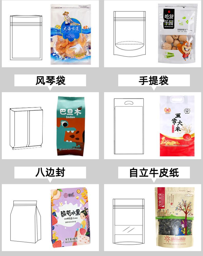 Bolsa de envasado de alimentos personalizada de fábrica, con sello de ocho lados, de aluminio, de plástico compuesto, con sello, bolsa independiente, bolsa con cremallera para snacks