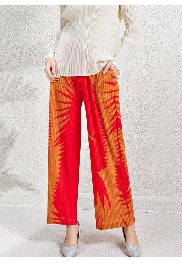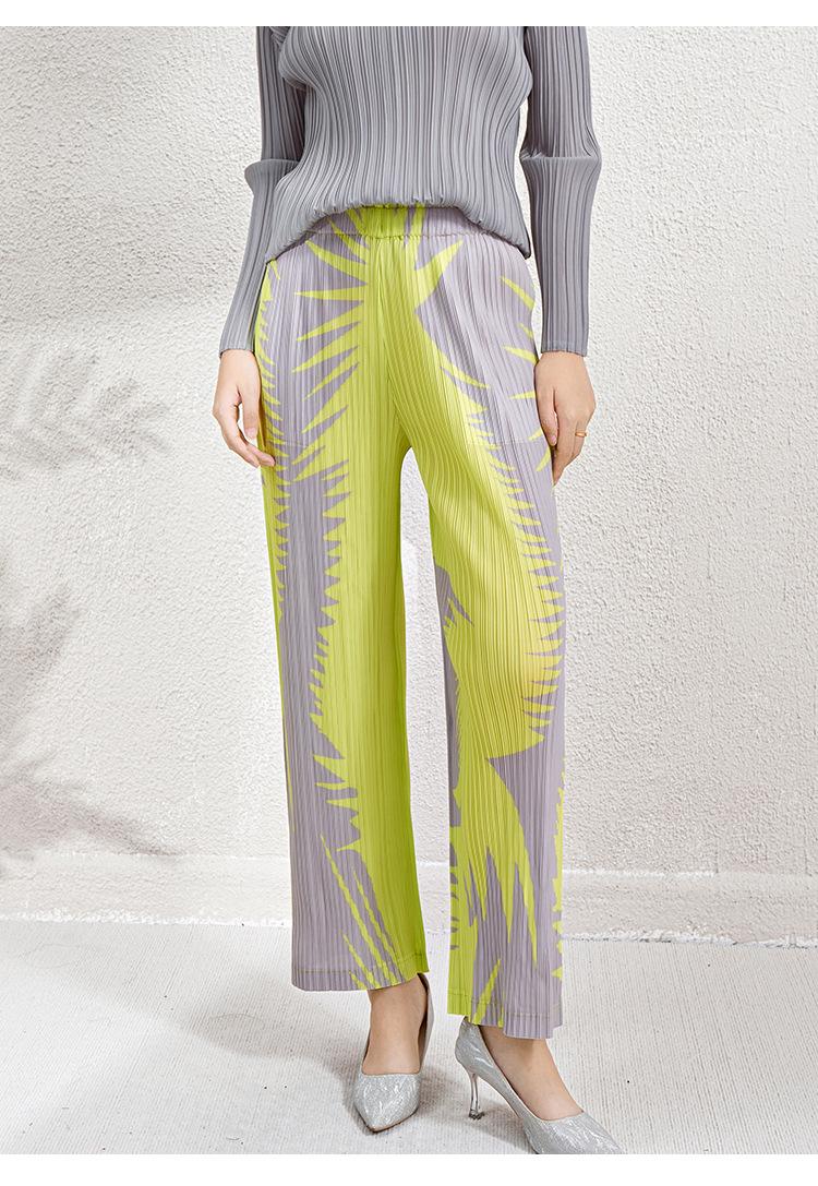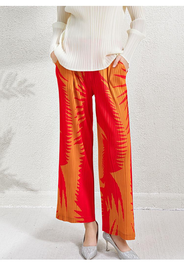 Pantalones casuales capri de rayas de alta calidad estilo japonés nuevos sueltos de pierna ancha con cintura elástica, pantalones casuales plisados de pierna recta