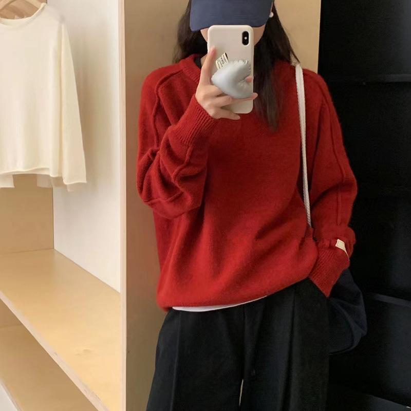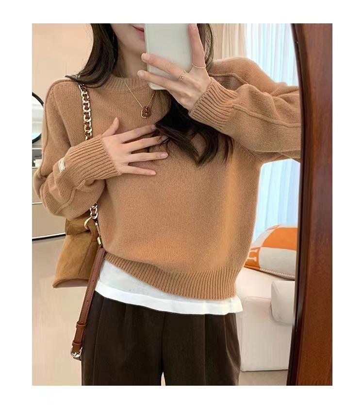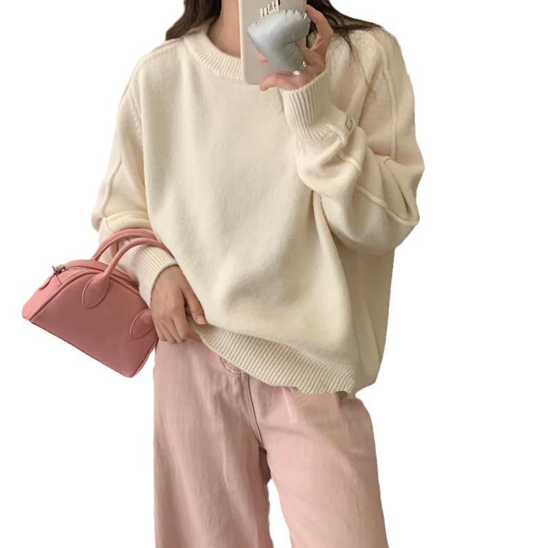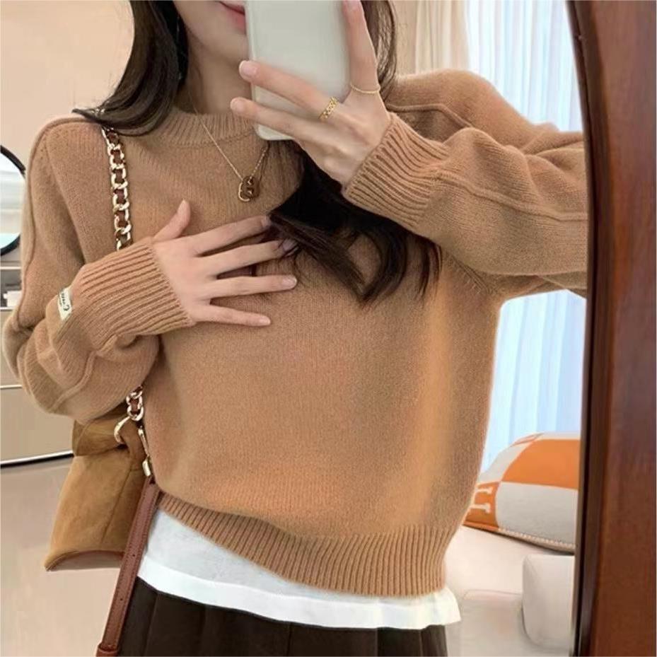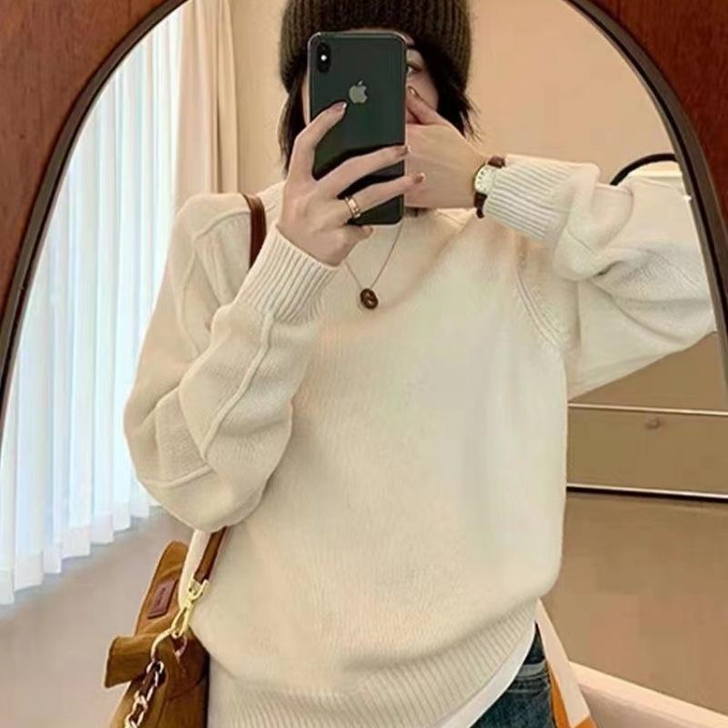 Suéter Nuevo de Lana de Oveja de Color Sólido para Invierno, Diseño Nicho, Capa Base Tejida de Cuello Redondo, Jersey de Moda para Mujer