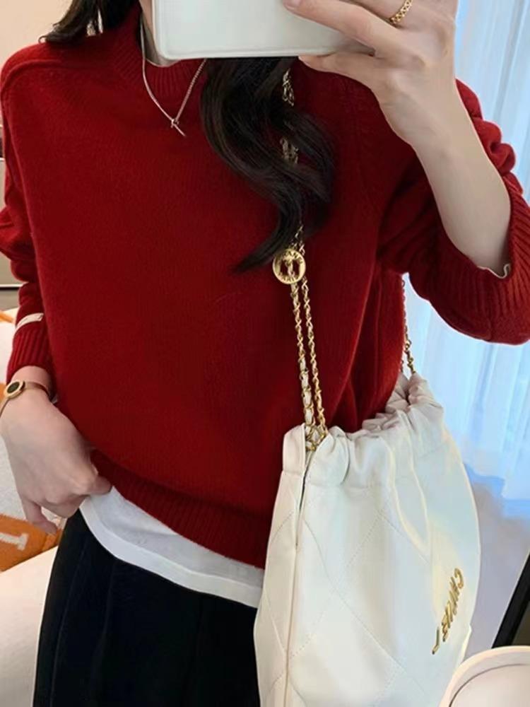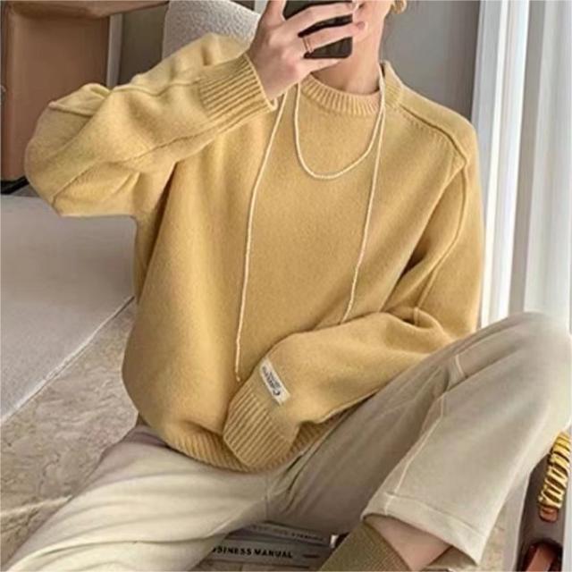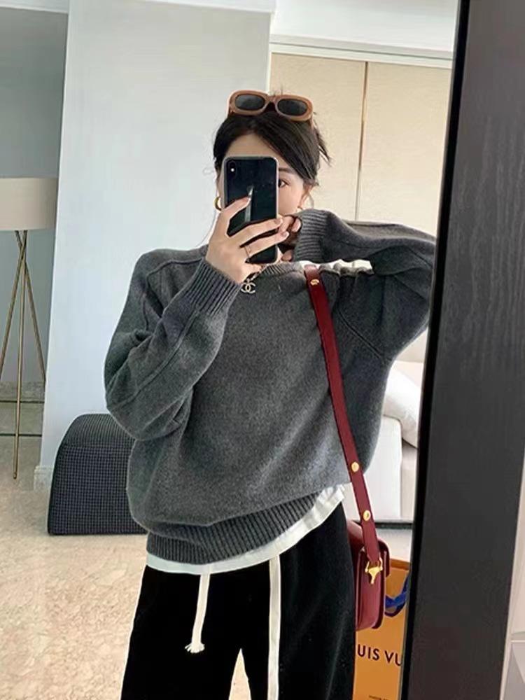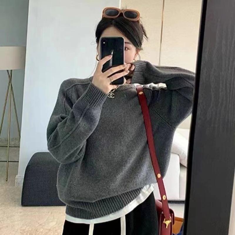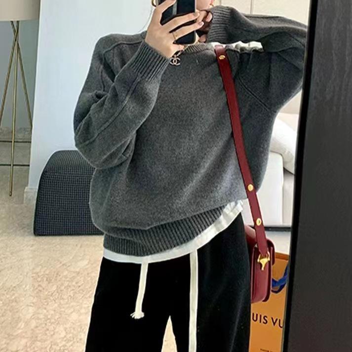 Suéter Nuevo de Lana de Oveja de Color Sólido para Invierno, Diseño Nicho, Capa Base Tejida de Cuello Redondo, Jersey de Moda para Mujer