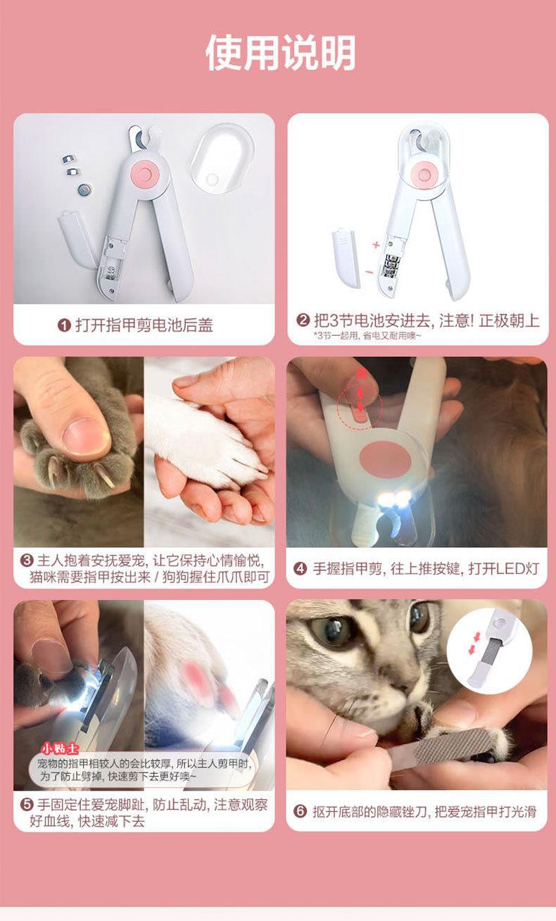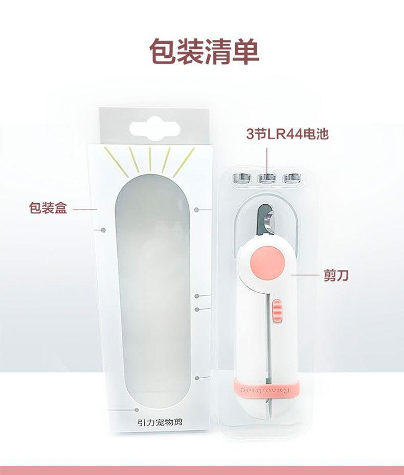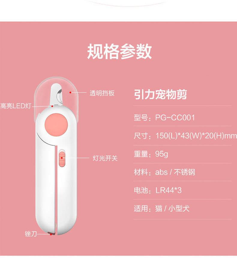 [Nombre]: Cortapelos LED para mascotas [Color]: azul, rosa [Batería]: pila de botón LR44*3 [Tamaño]: 150 (L) * 43 (W) * 20 (H) mm [Material]: ABS + acero inoxidable [Embalaje]: caja de papel 19*7*2.5CM [Peso]: peso neto 95g peso bruto 121g [Tamaño de la caja]: 30*25*24cm 36 piezas/caja peso bruto 4.8kg peso neto 4.35kg