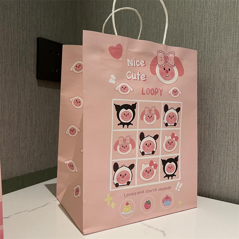 Bolsa de papel con diseño de rubí, bonita bolsa de regalo con forma de corazón para chica de gran capacidad, bolsa de regalo estilo ins para cumpleaños de estudiante.