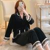 Pijama de manga larga de encaje de alta gama de estilo coreano para mujer, nuevo cárdigan informal sencillo de otoño, pantalones, ropa de casa, traje