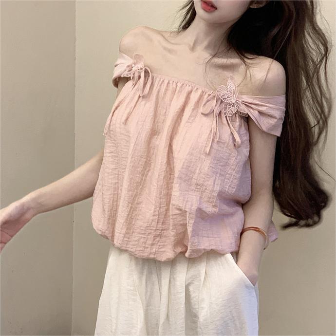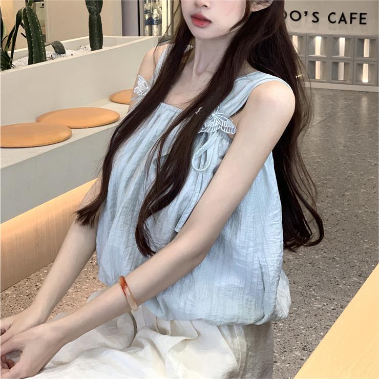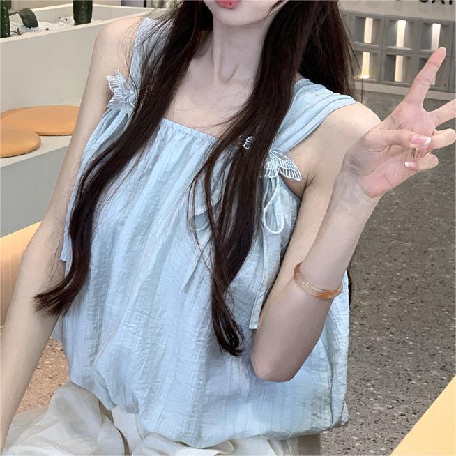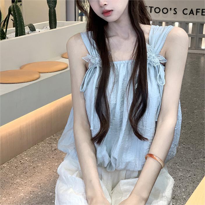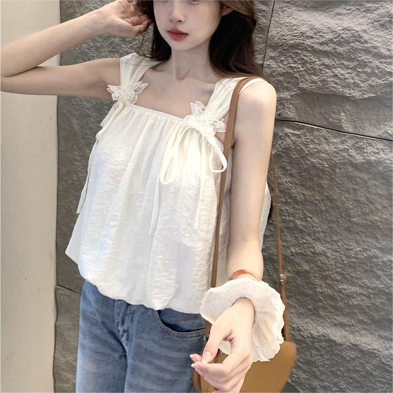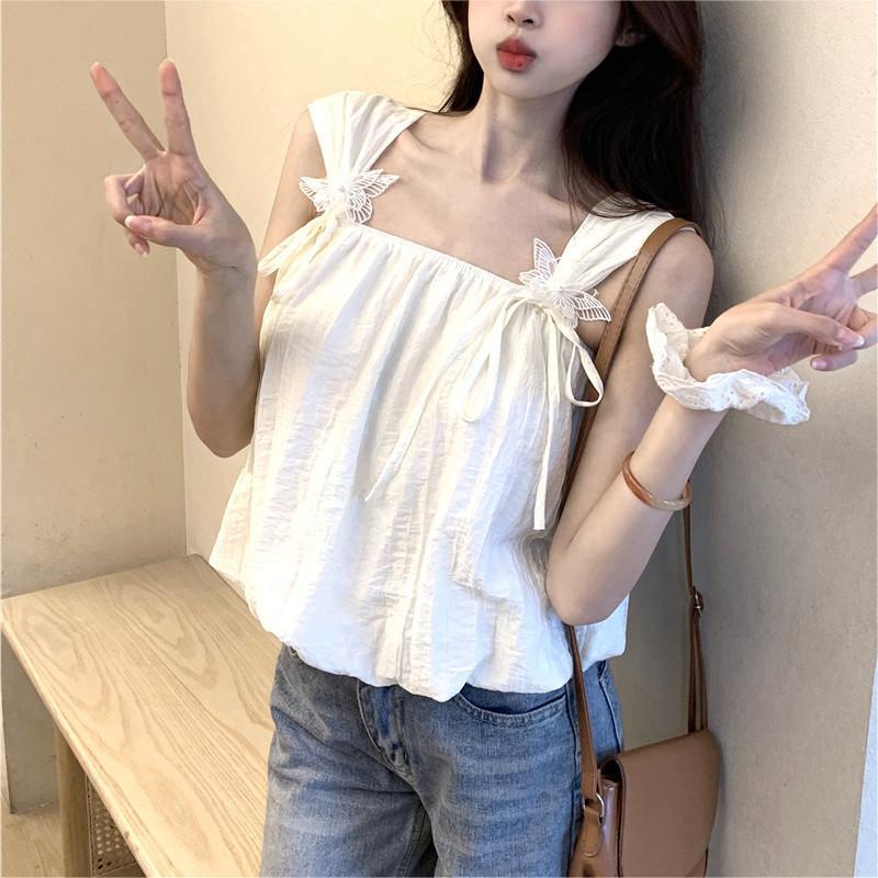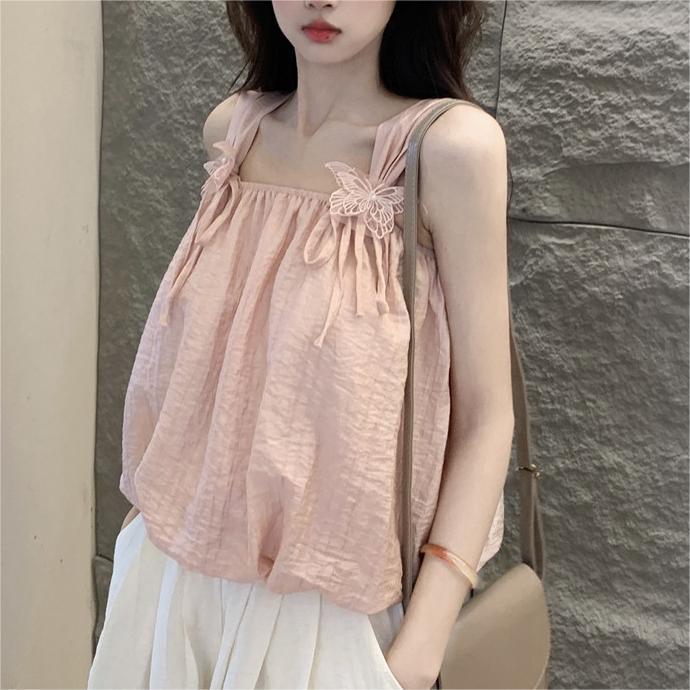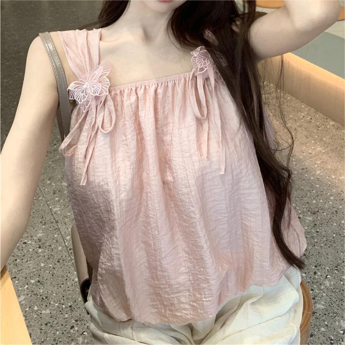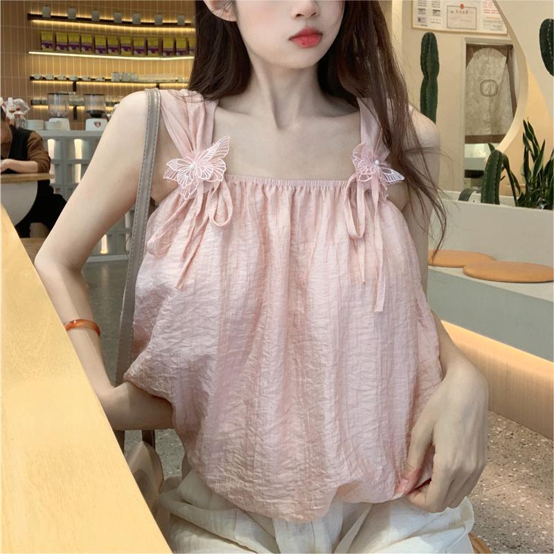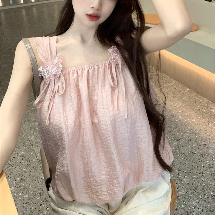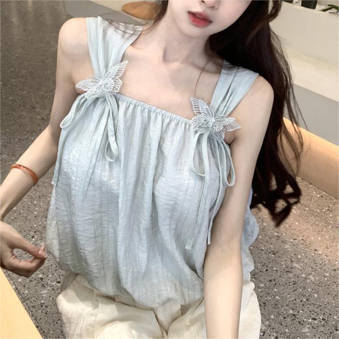 Camisola de Color Sólido con Mariposa Tridimensional Dulce y Pura para Mujer 2025 Nuevo Verano sin Mangas Top Holgado