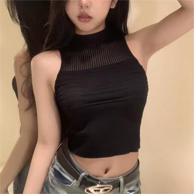 Camisola de punto hueca Sweet Spice Girl para mujer, camiseta de verano con base en forma de I, interior elástica sexy, corta, exterior