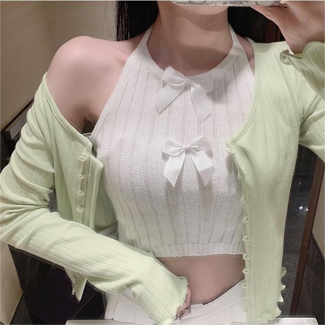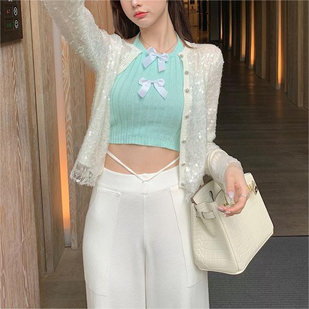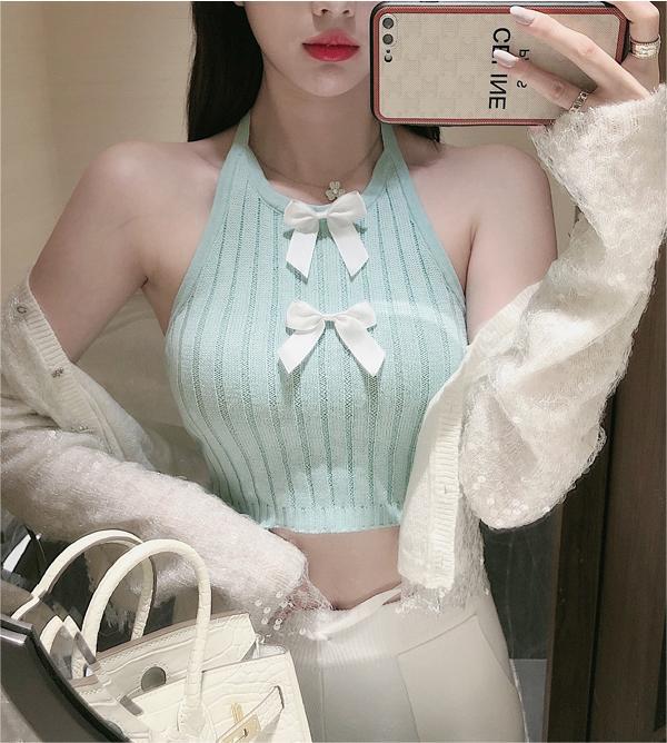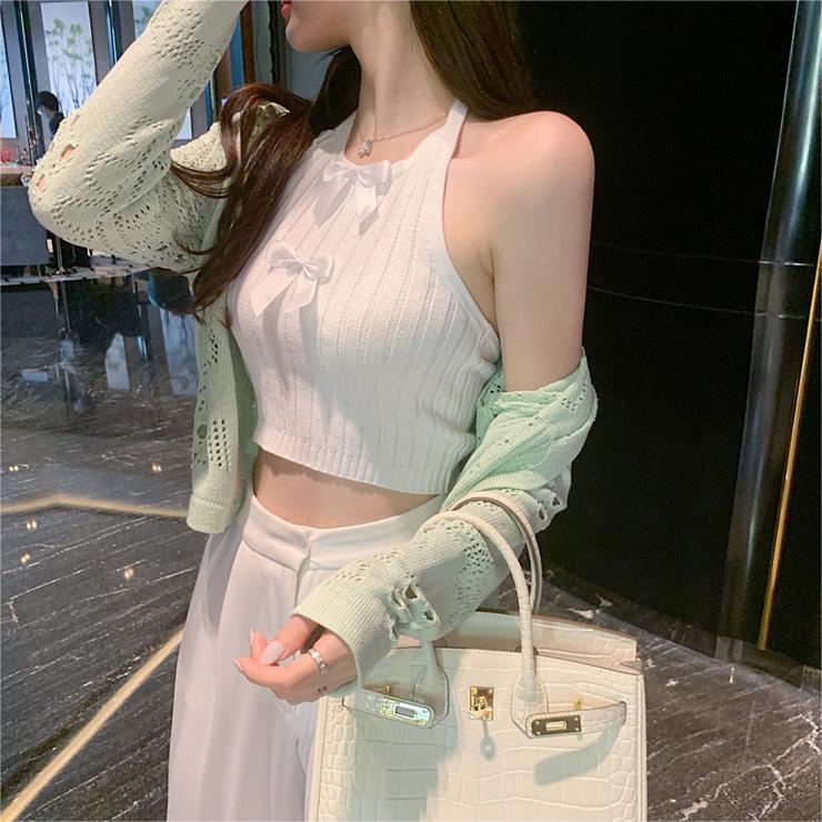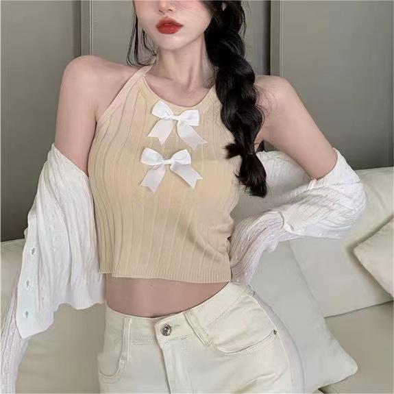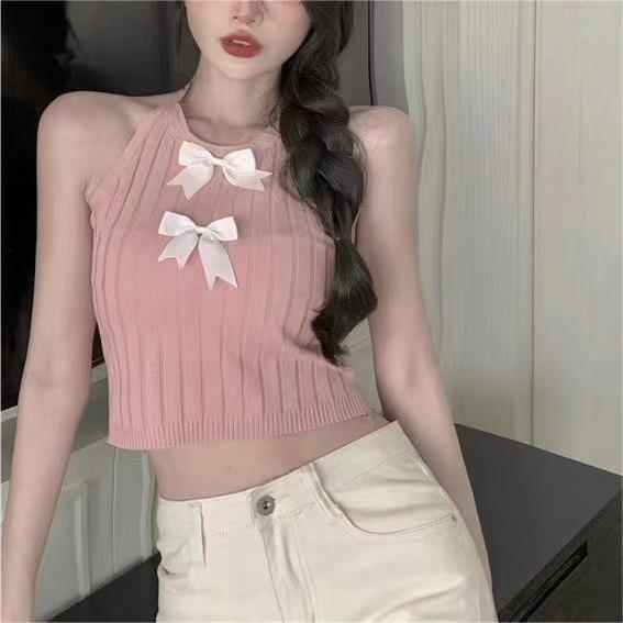 Top corto de punto sexy y ajustado para mujer, prenda exterior de primavera y verano, estilo coreano, con tirantes pequeños, 2024